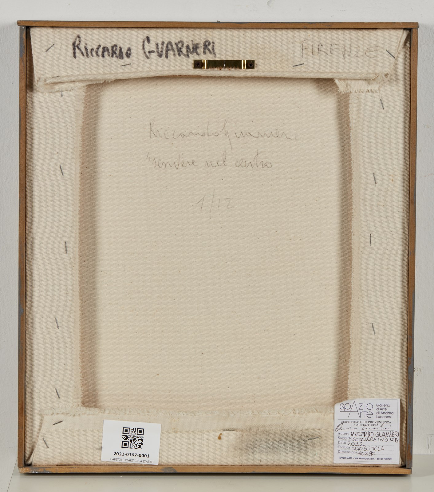 Firma in basso al centro. Al retro titolo, firma e cartiglio descrittivo Spazio Arte, Firenze. Autentica dell'artista su fotografia. Entro teca di plexiglass. Lievi difetti.