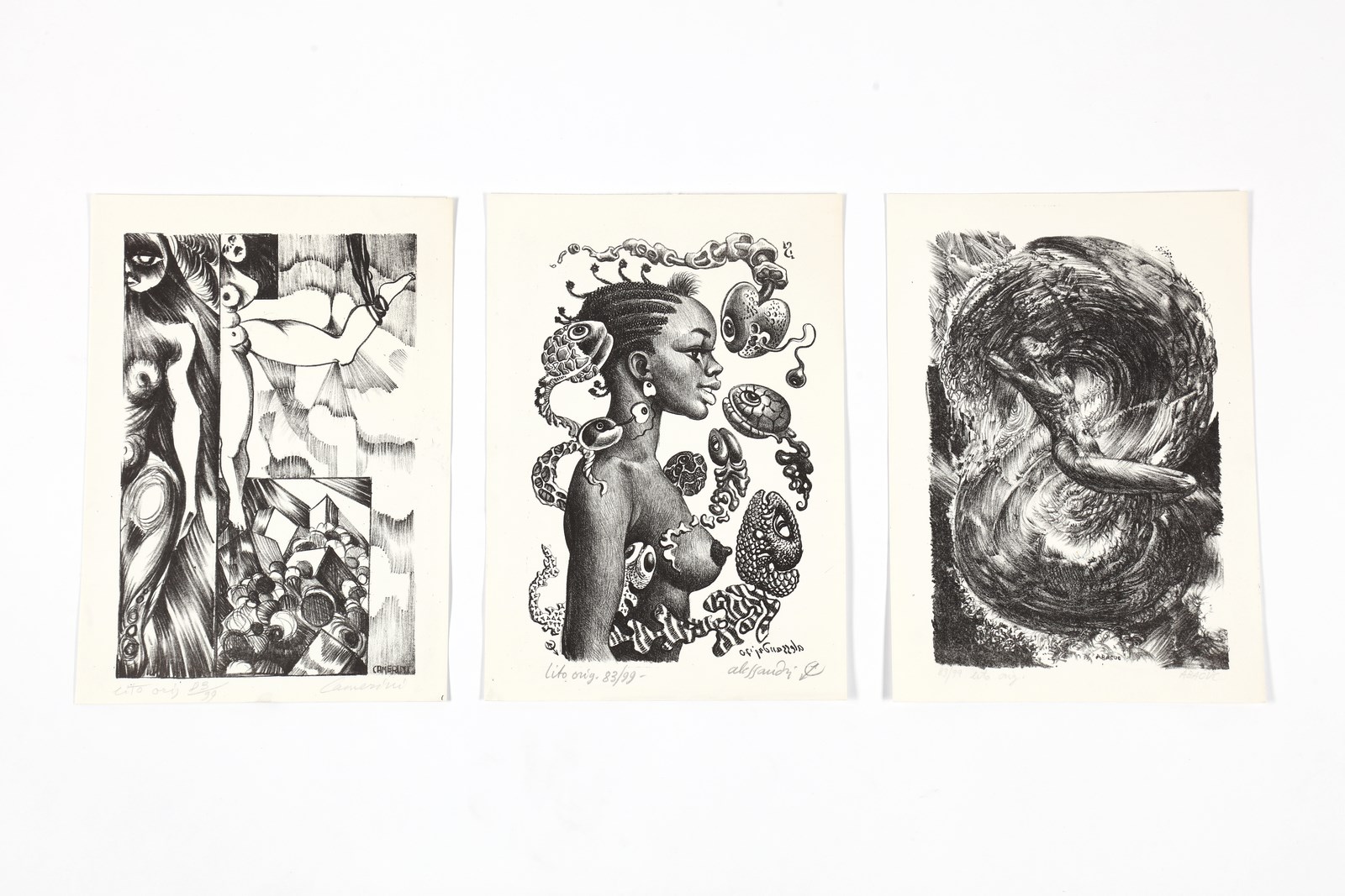 83/99. Cartella composta da n.3 litografie di Abacuc, Alessandri e Camerini e un disegno su carta di Camerini.Ogni grafica presenta firma e tiratura in basso a matita e firma in lastra in basso a destra.
