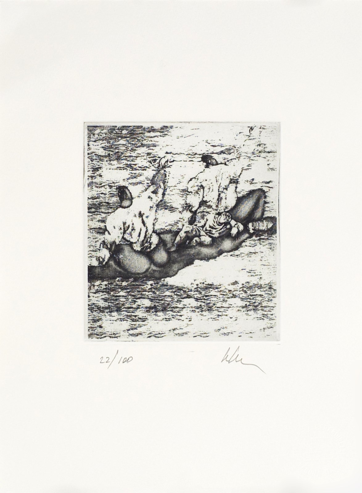 H.C. Tiratura e firma in basso a matita. Timbro a secco Stamperia Berardinelli, Verona, in basso a destra. Dimensioni lastra: 13,00 x 11,50 cm.