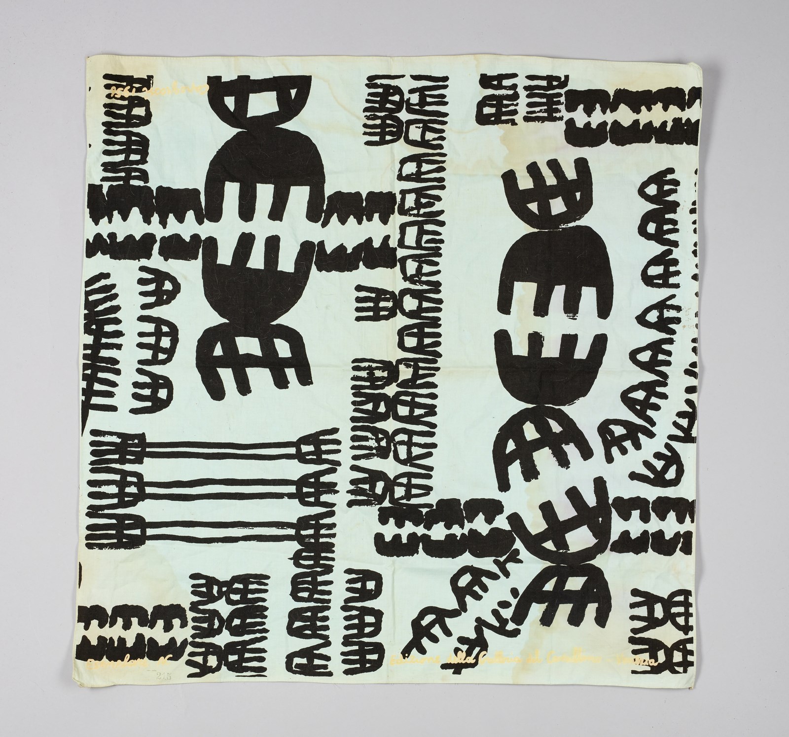 Esemplare N. 215. Firma e anno stampate su tessuto. Edizione Galleria del Cavallino, Venezia 1956. Difetti.