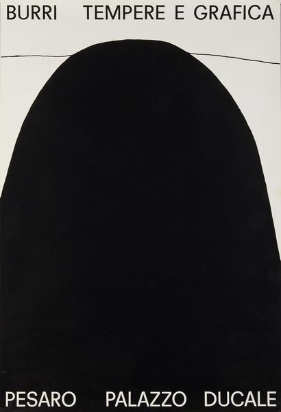 Poster della mostra personale ''Tempere e Grafica'' ''dell'artista Alberto Burri tenutasi a Palazzo Ducale di Pesaro nel 1976. Difetti.