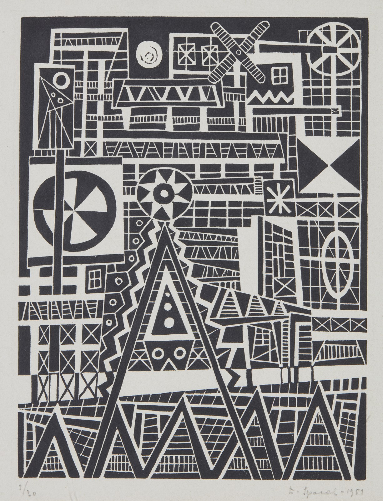 9/30. Tiratura, firma e anno in basso a matita. Esposizione: Luigi Spacal - opere grafiche, 13 Aprile - 14 Maggio 1983, Galerie Rive Gauche, Roma.