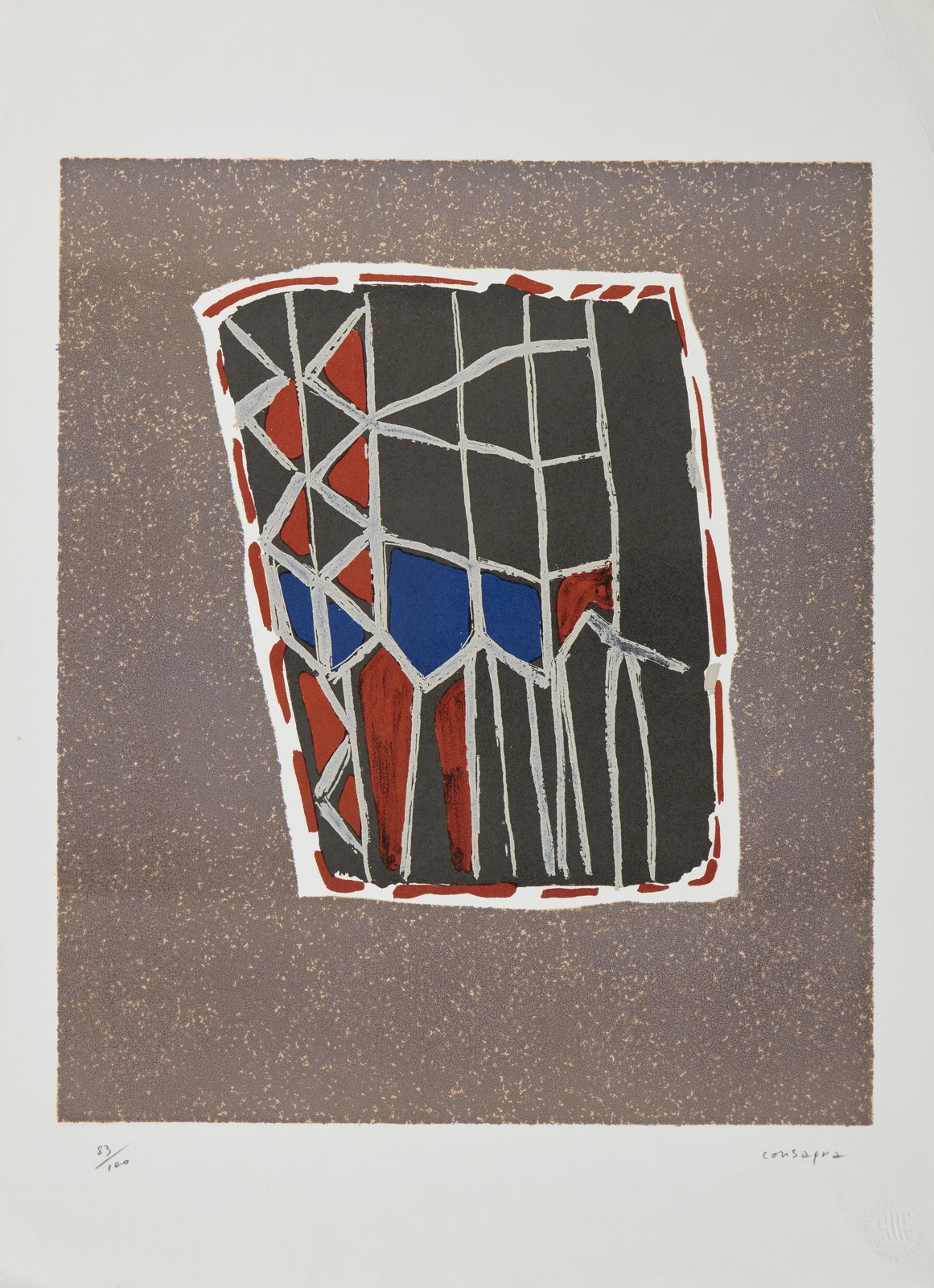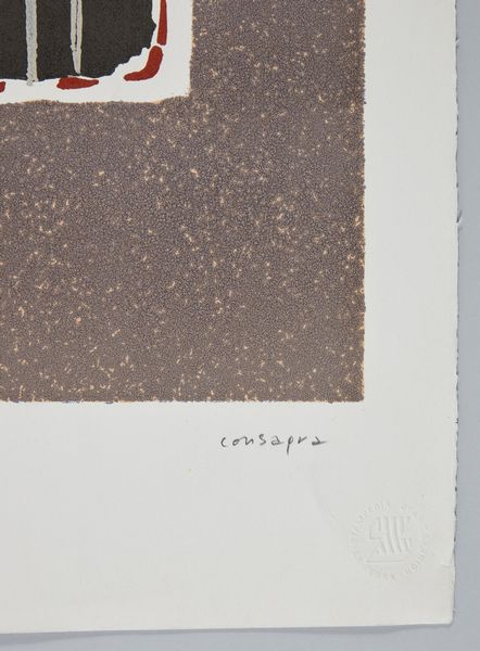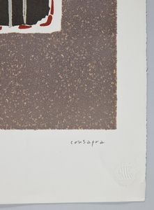 83/100. Tiratura in basso a sinistra, firma a matita in basso a destra.Timbro a secco in basso a destra: Stamperia d'arte La Zebra, Udine. Lievi Difetti. Dimensione lastra: 51x42.5 cm. Lievi difetti.