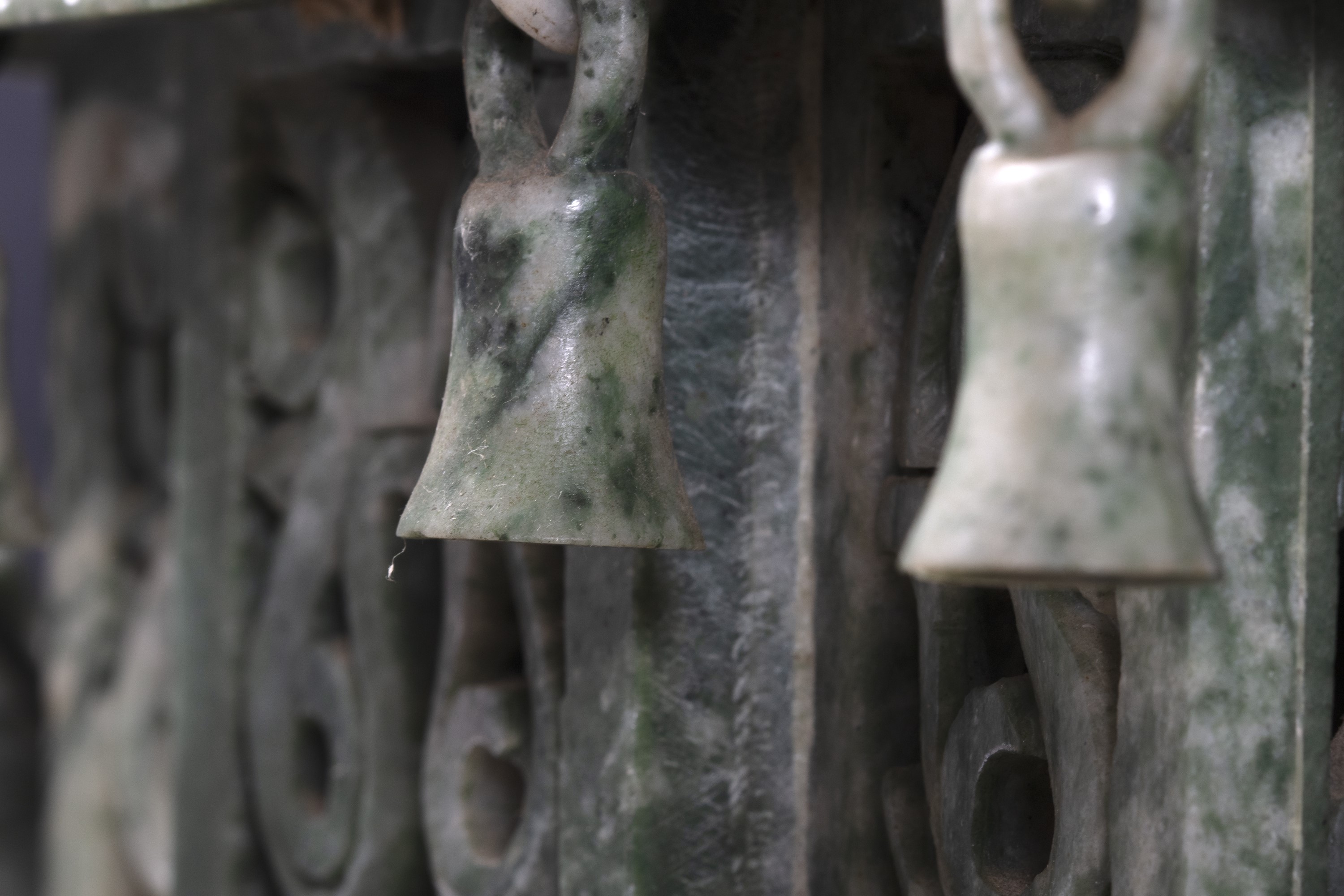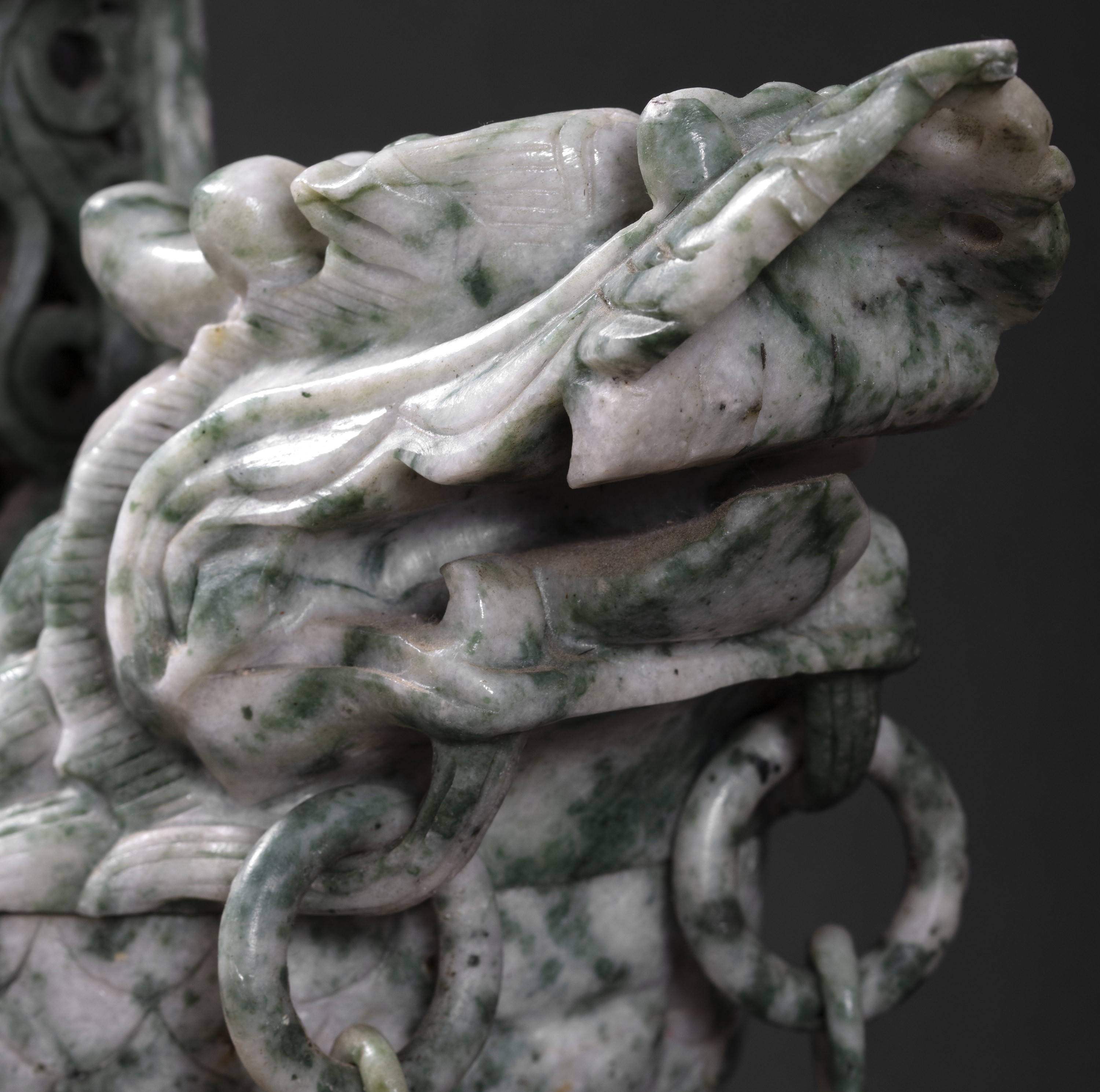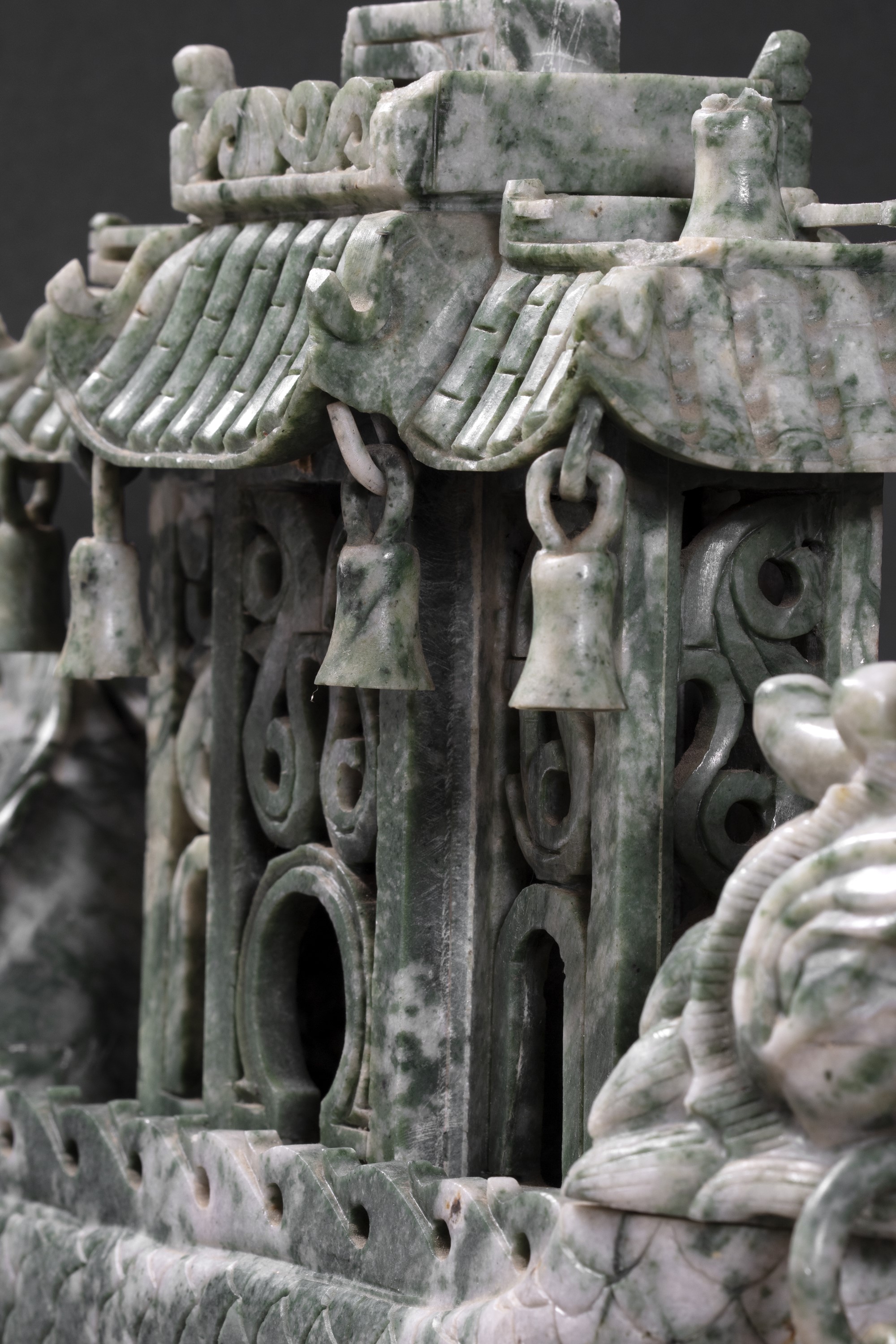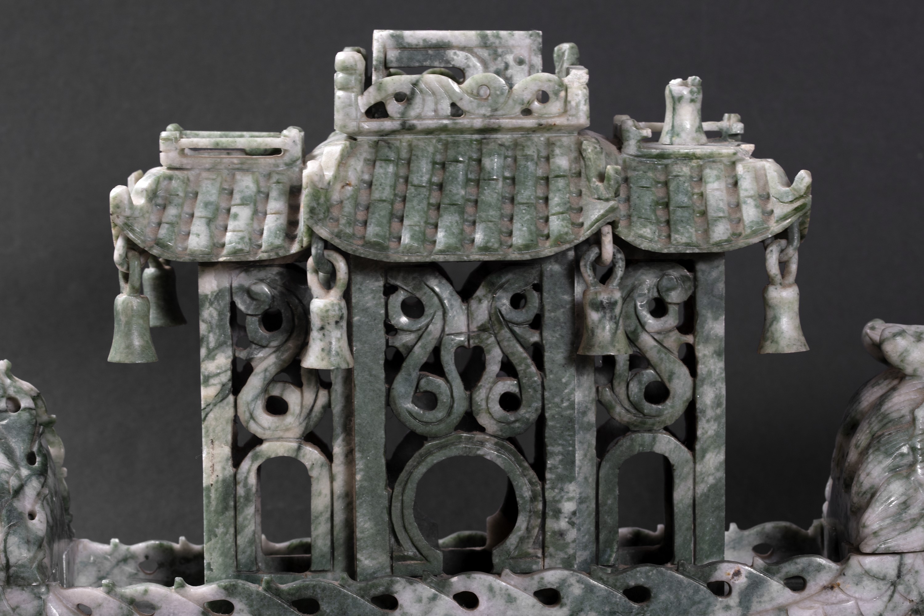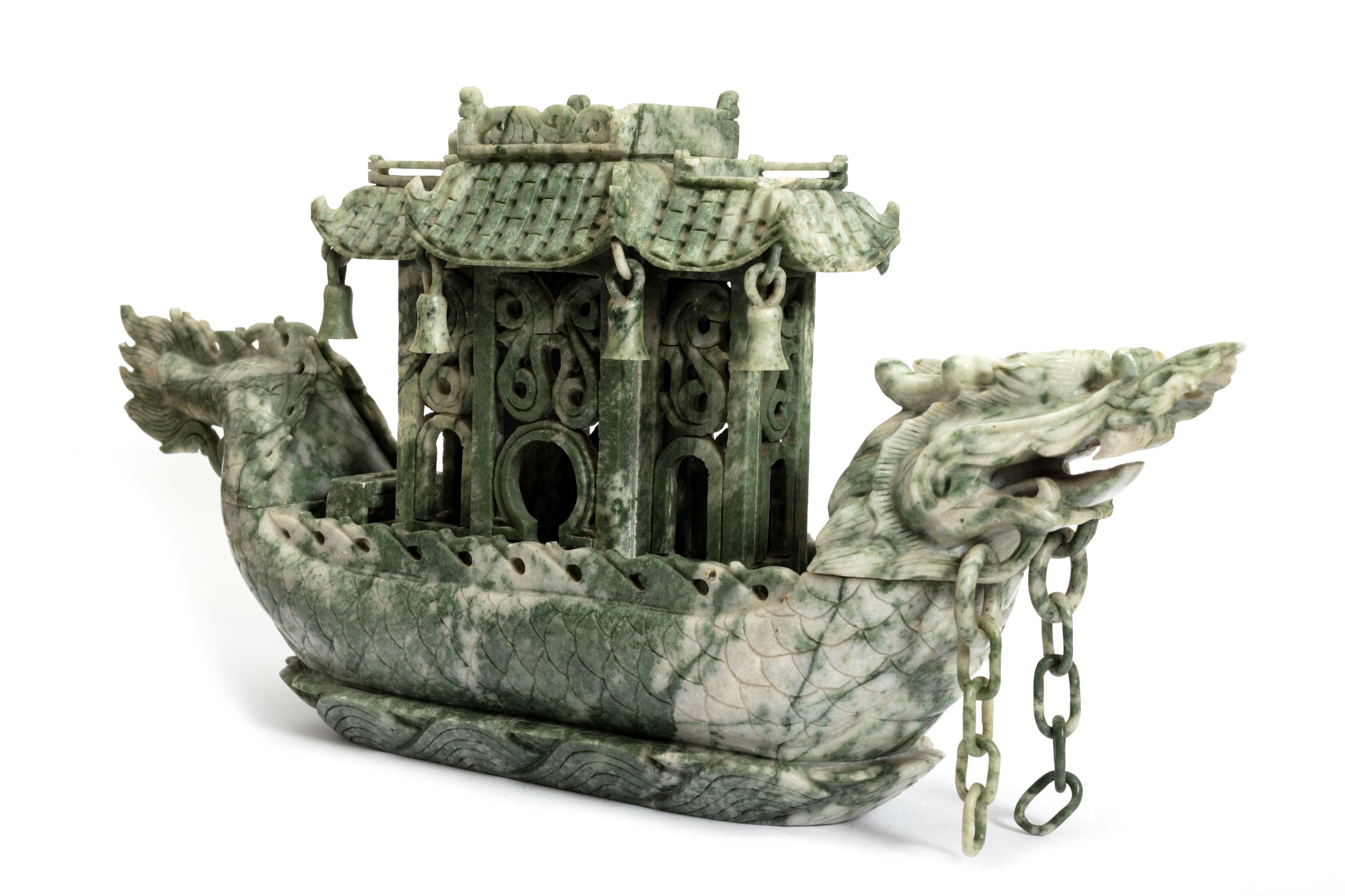 Barca in pietra verde a forma di drago con pagoda, Cina secolo XX
