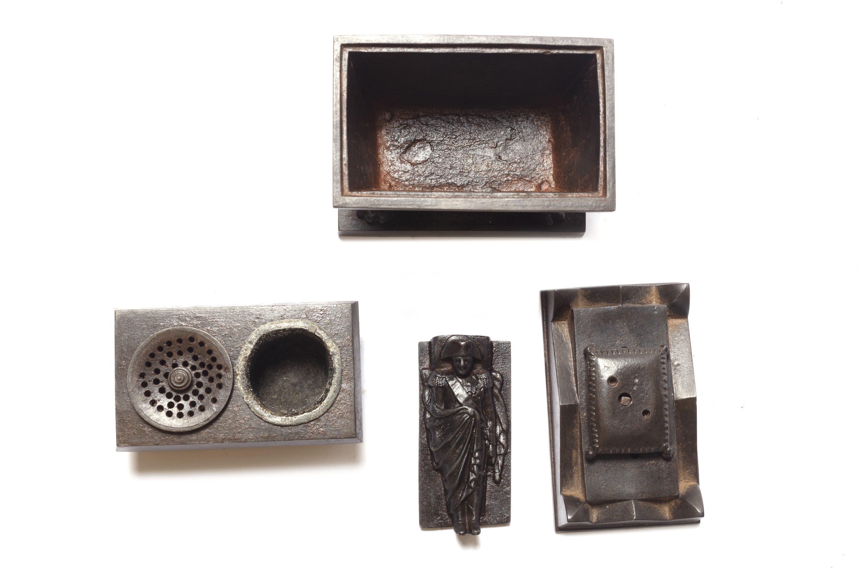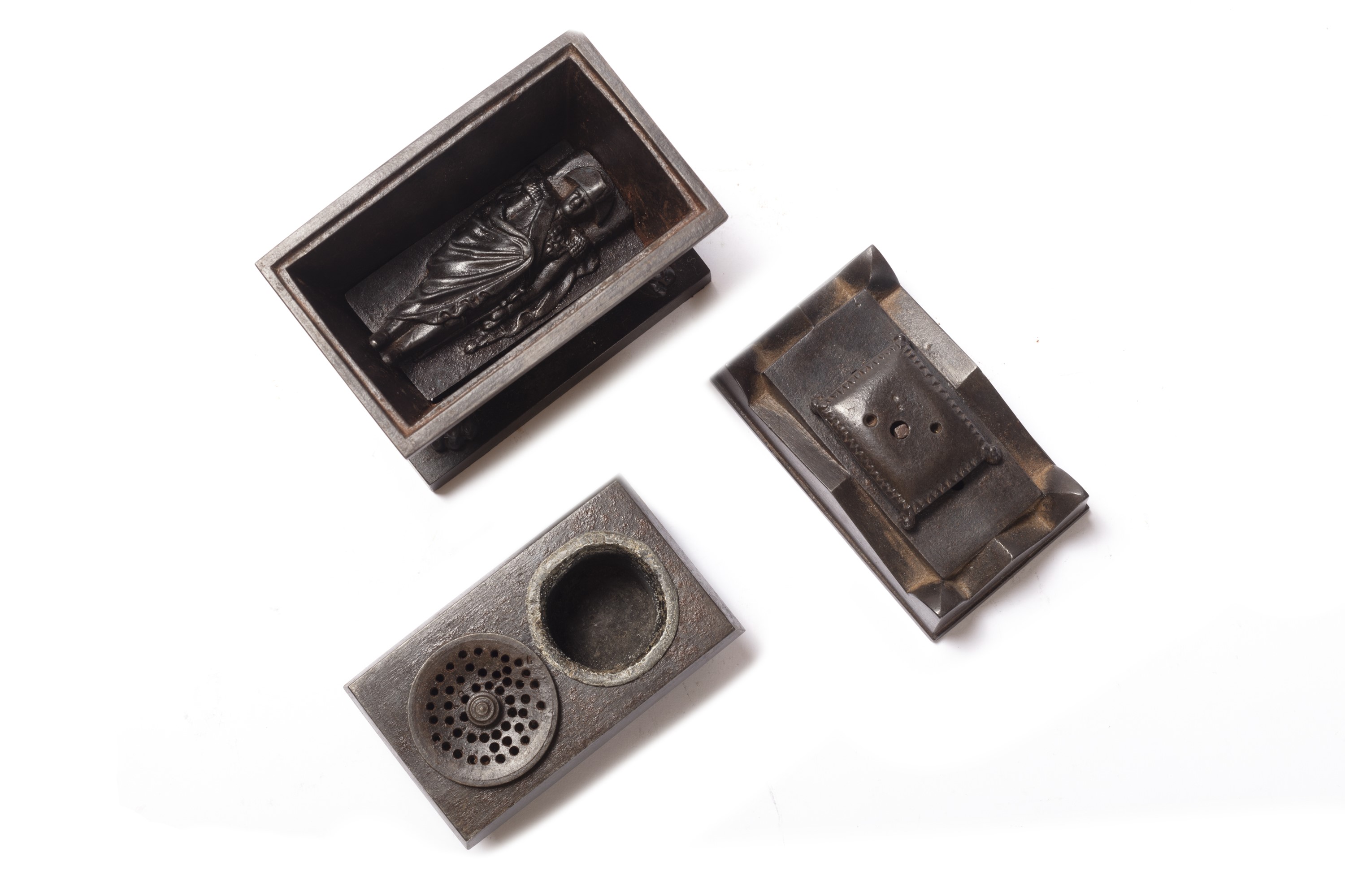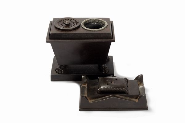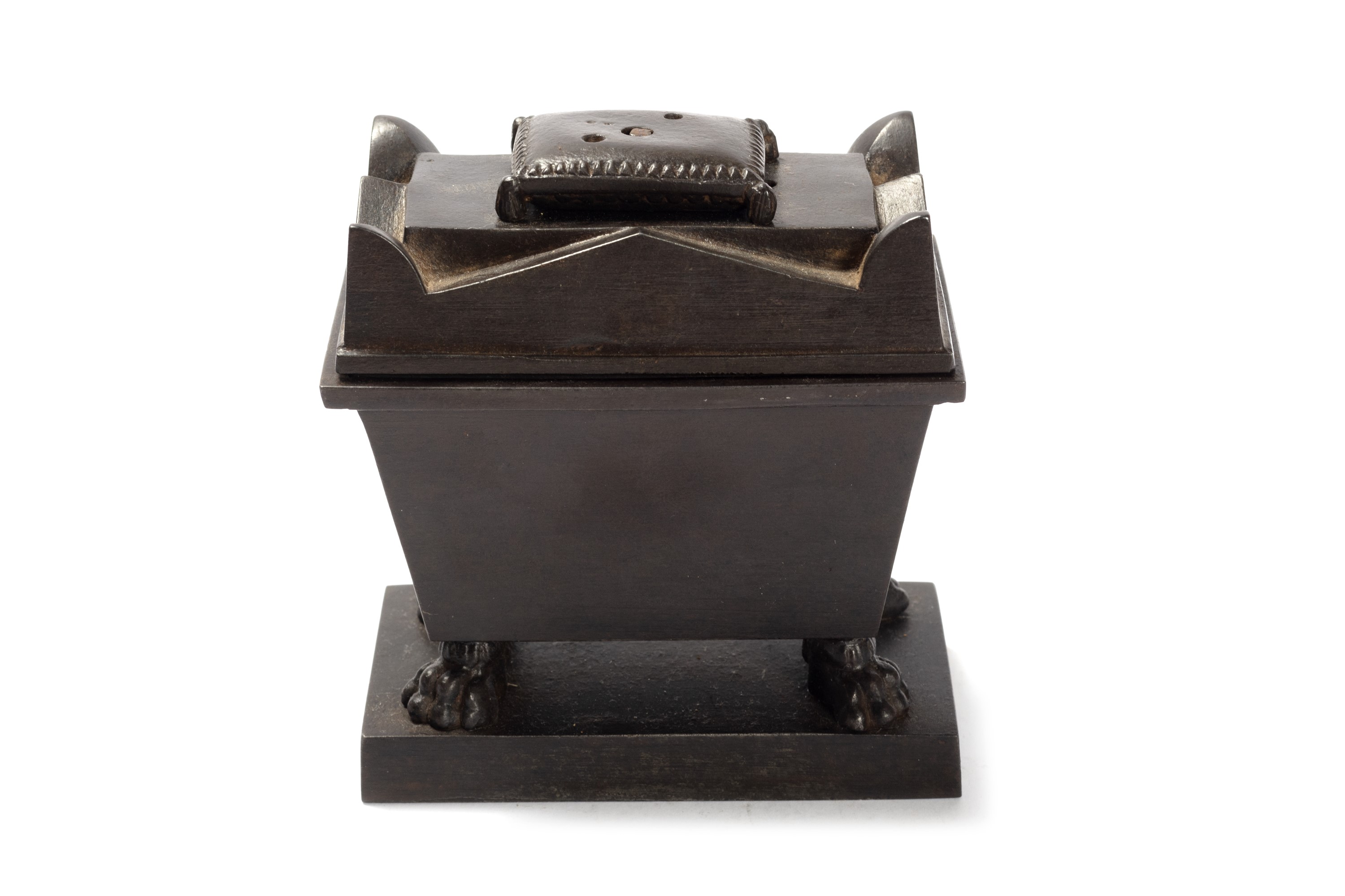 Calamaio in bronzo a forma di sarcofago neoclassico, secolo XIX