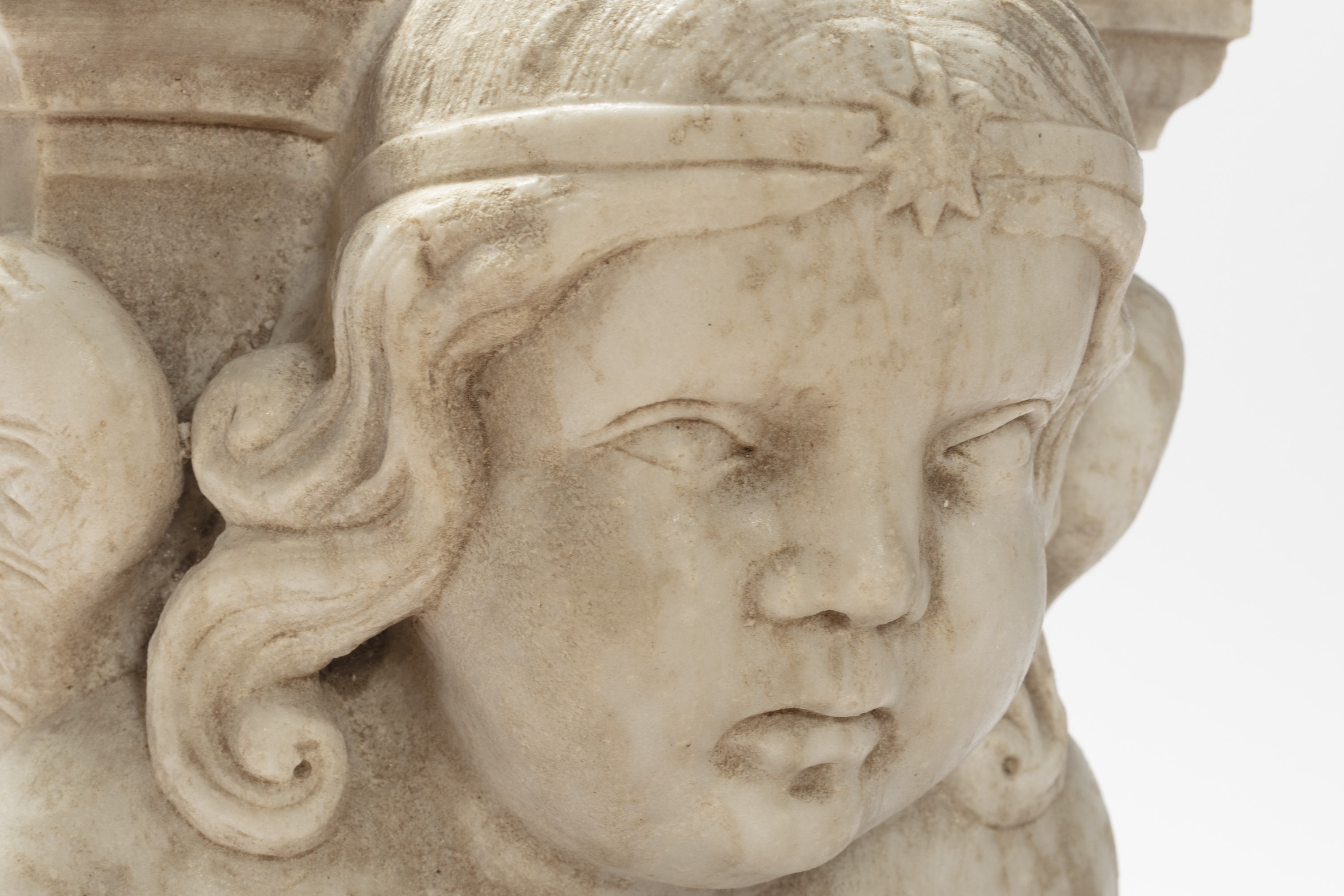 Capitello in marmo con testa di cherubino, fine secolo XIX
