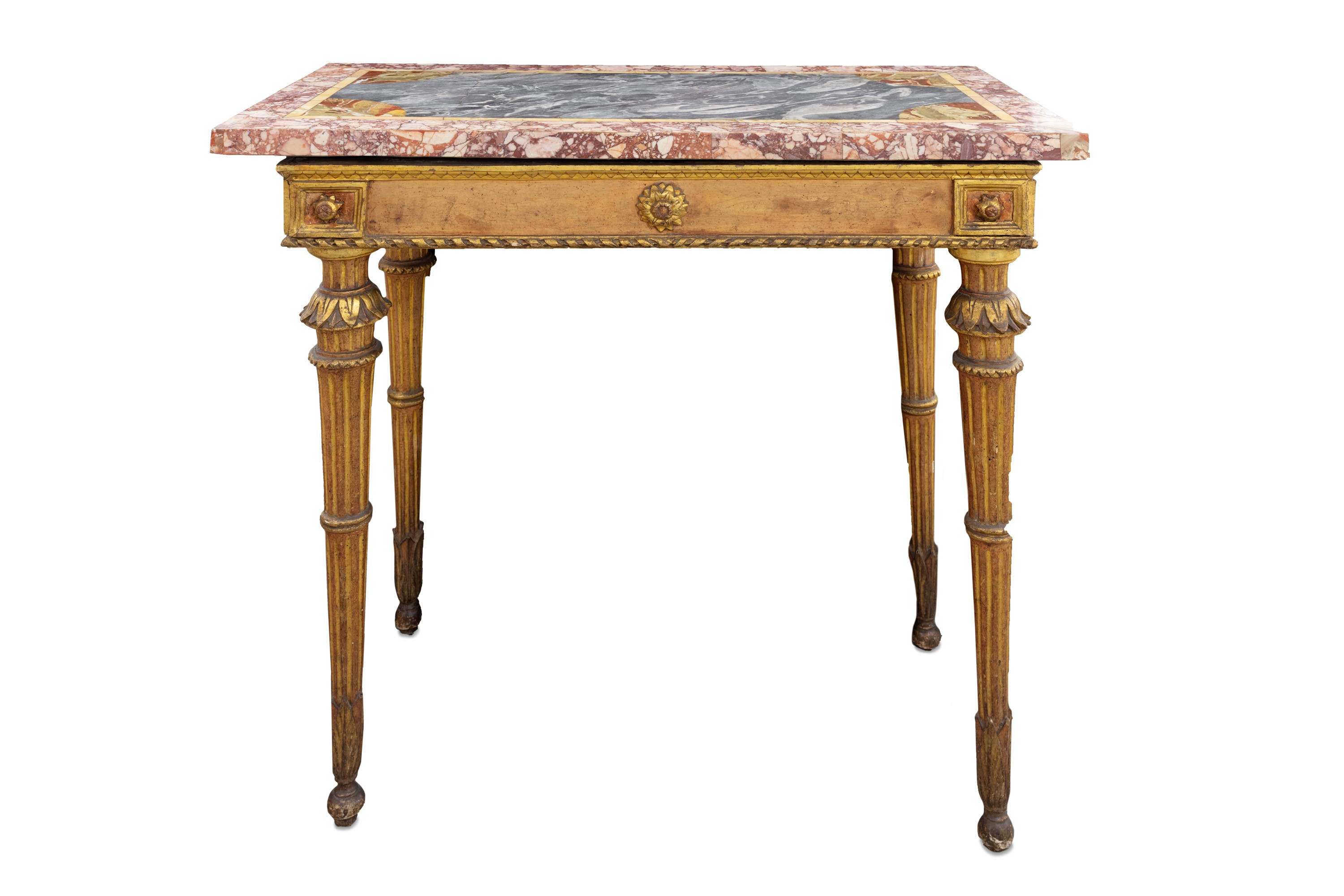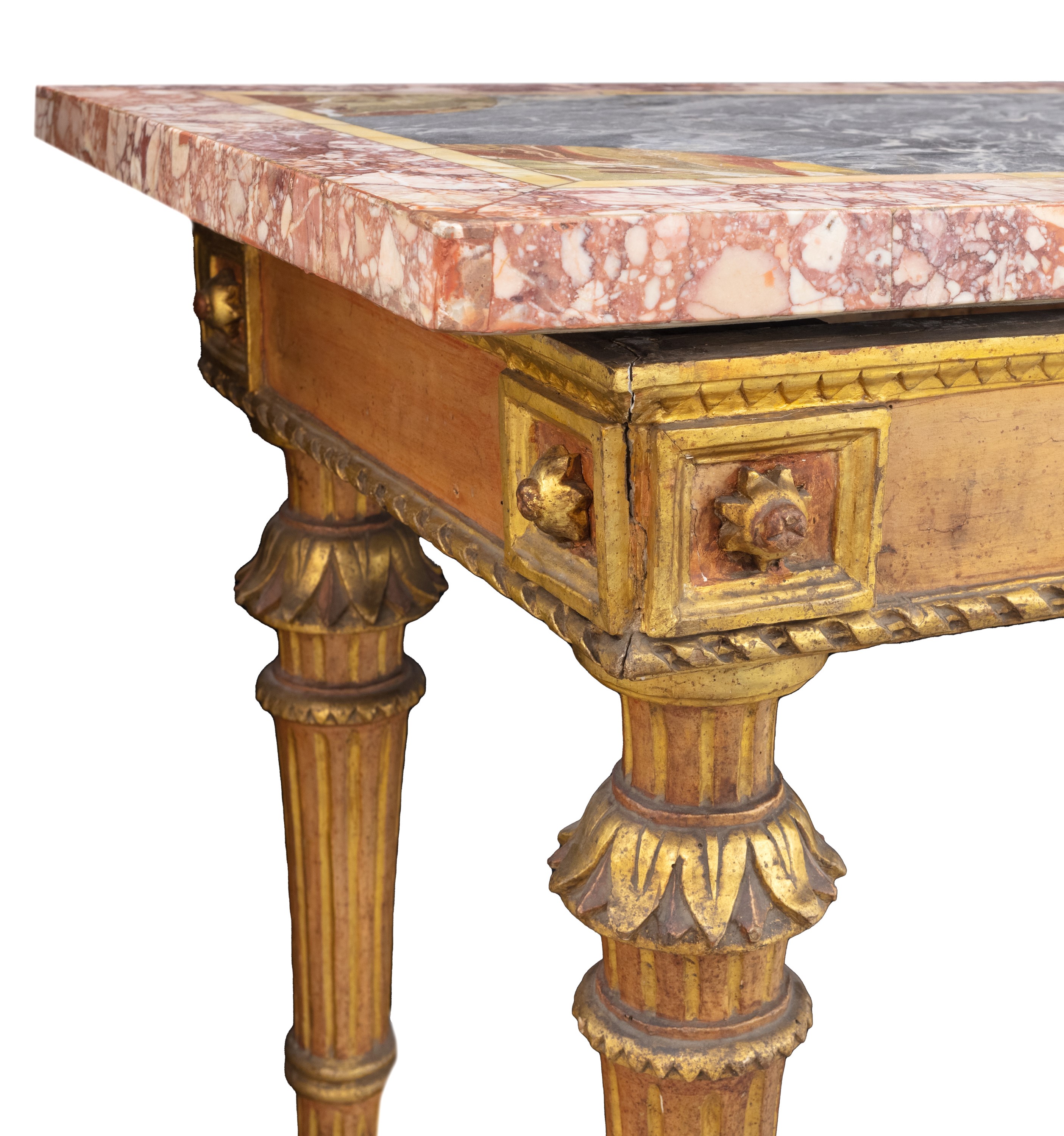 Console laccata e dorata Luigi XVI, con piano in marmo, fine del secolo XVIII
