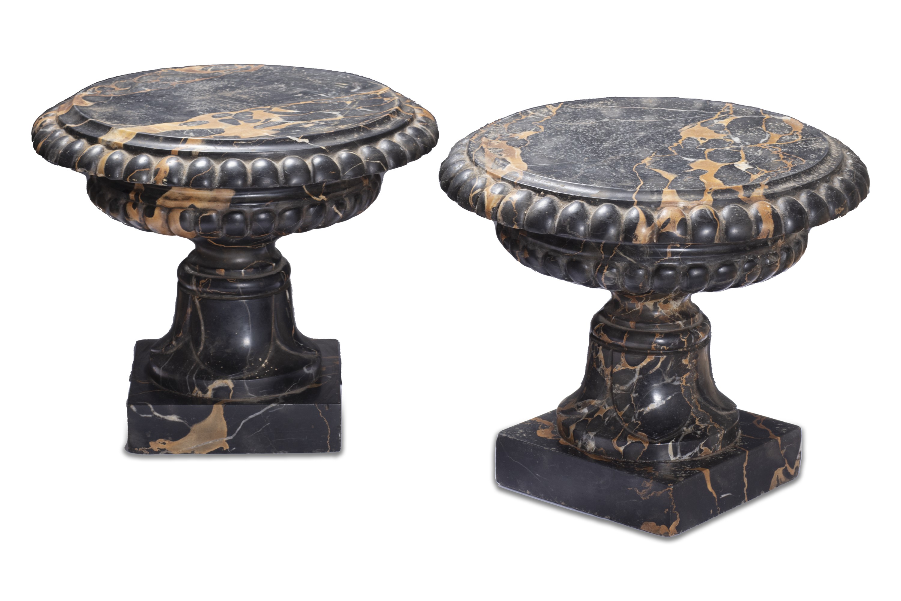 Coppia di alzate in marmo portoro, secolo XIX