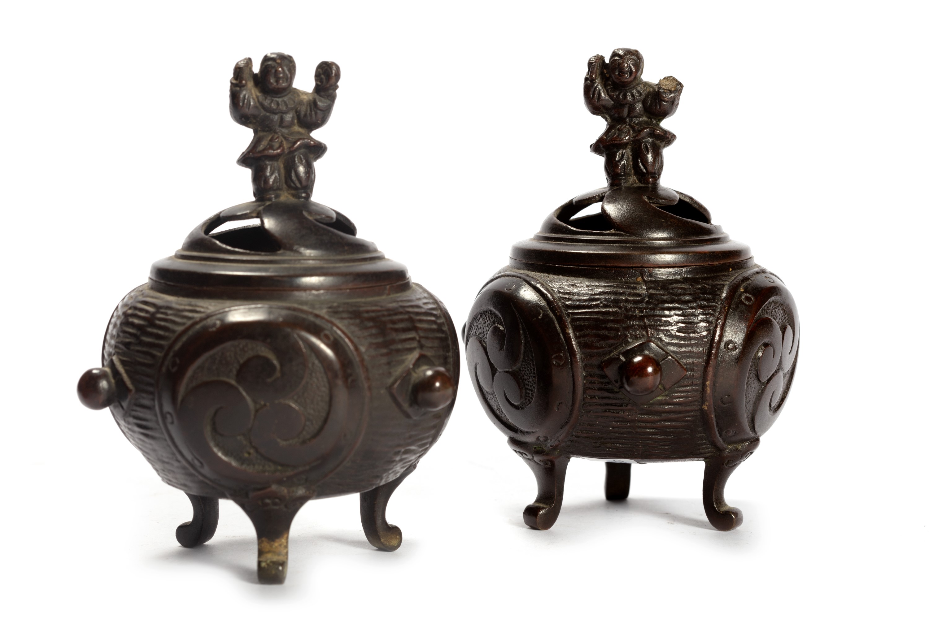 Coppia di brucia incensi in bronzo, Giappone periodo Meiji