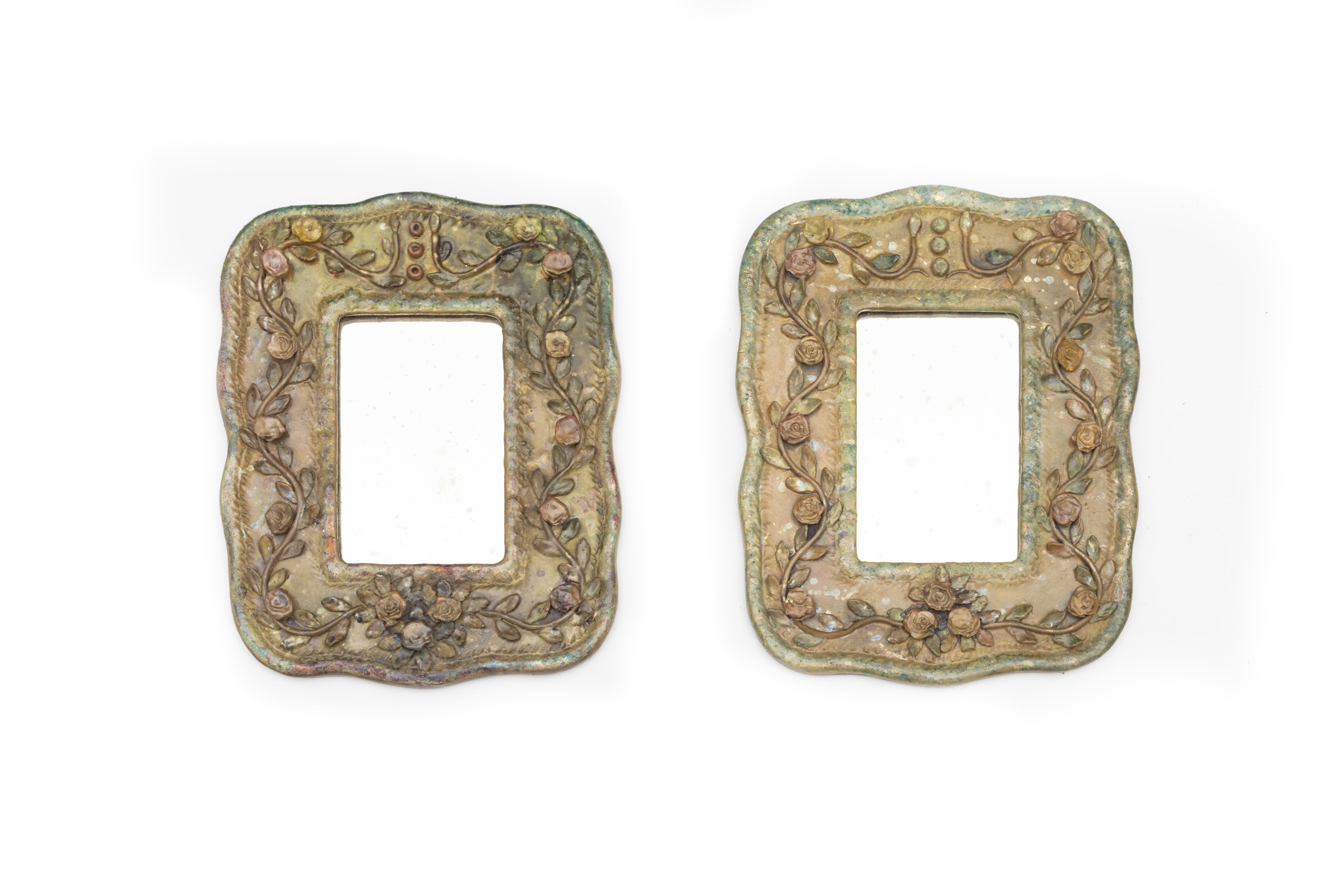 Coppia di specchierine in ceramica a lustro con motivi floreali, secolo XX