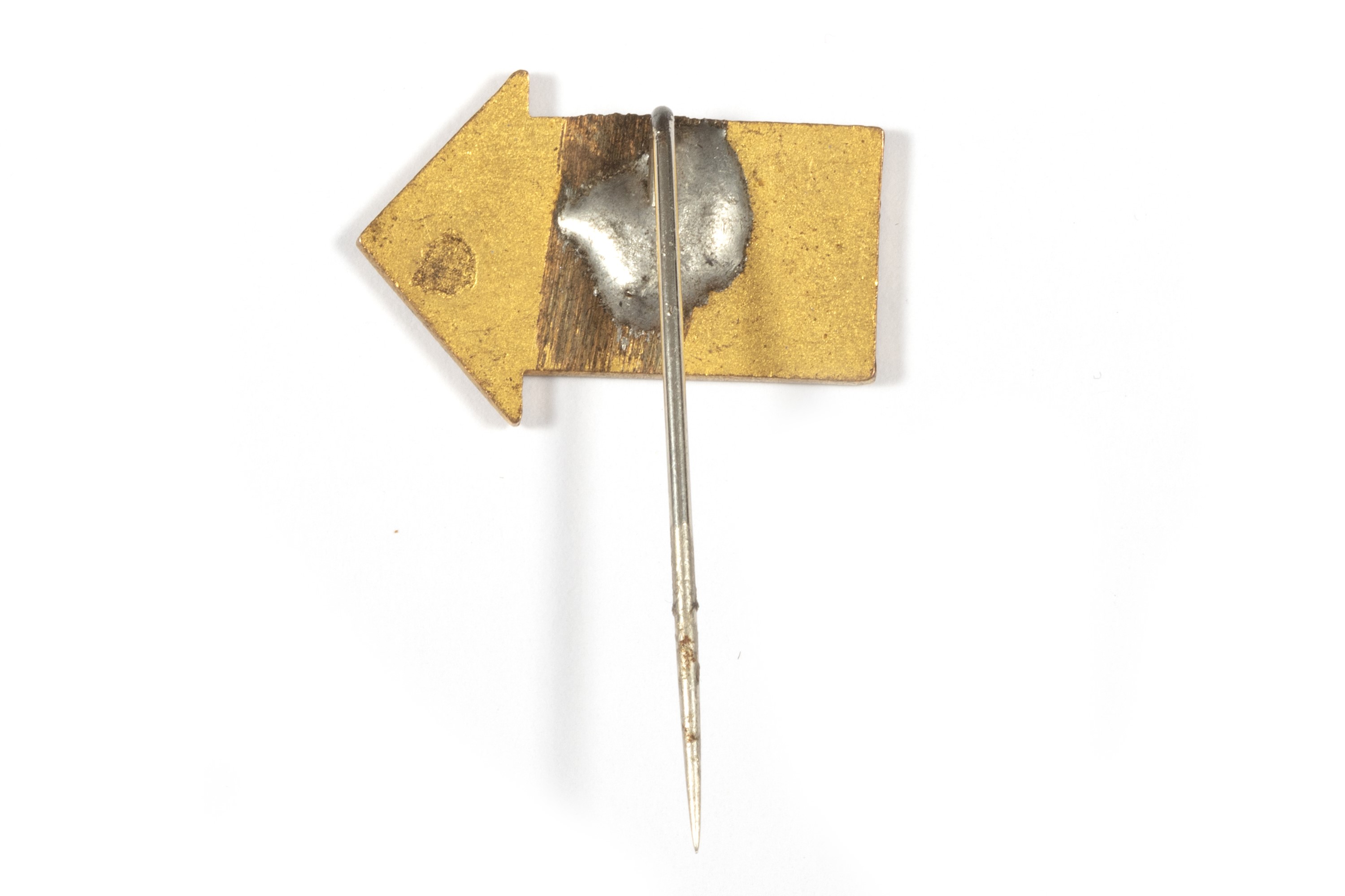 a forma di freccia con fondo in smalto rosso e scritta in oro, modificata sul retro in spilla da cravatta
