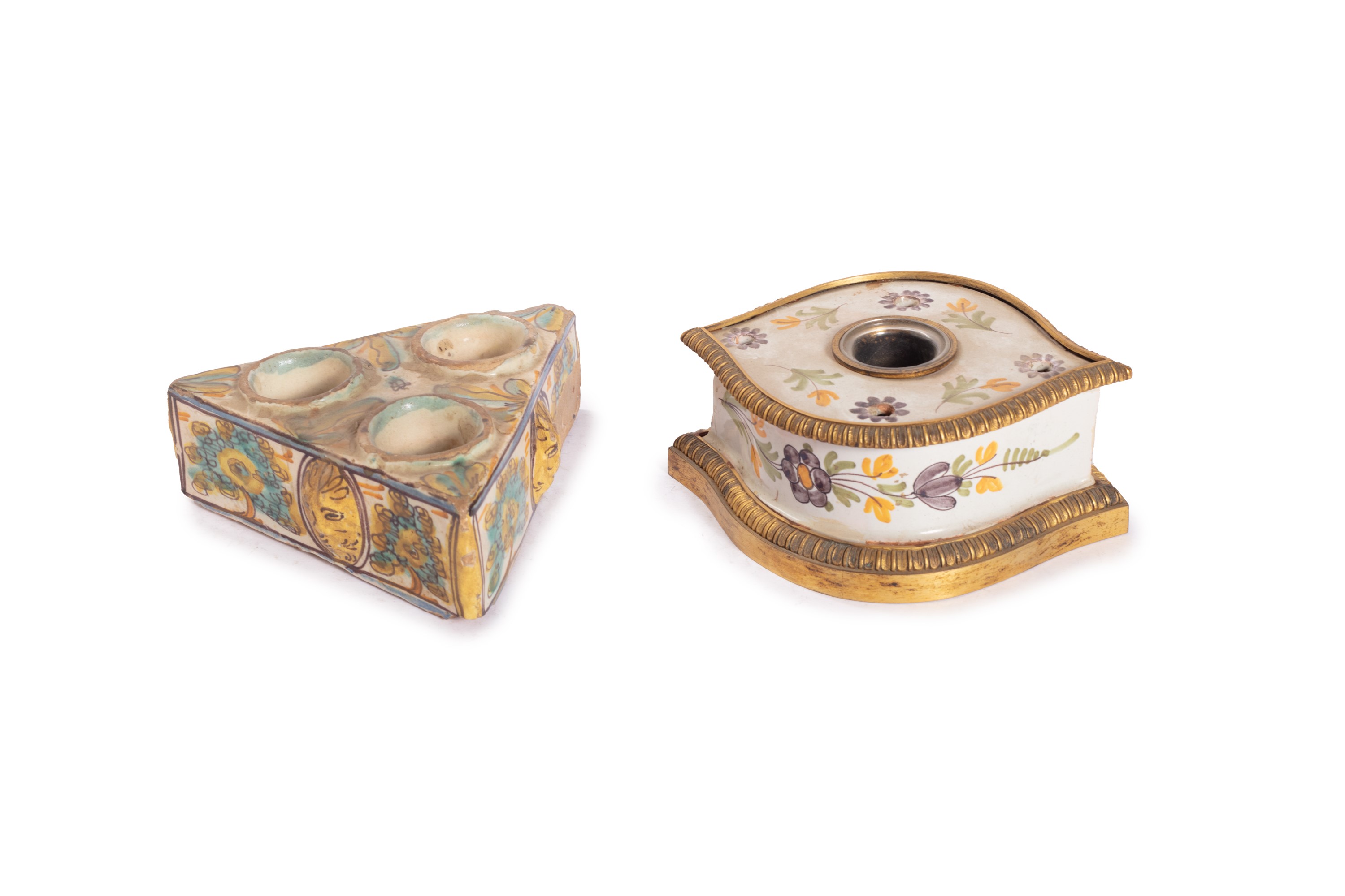 Due antichi calamai in ceramica policroma