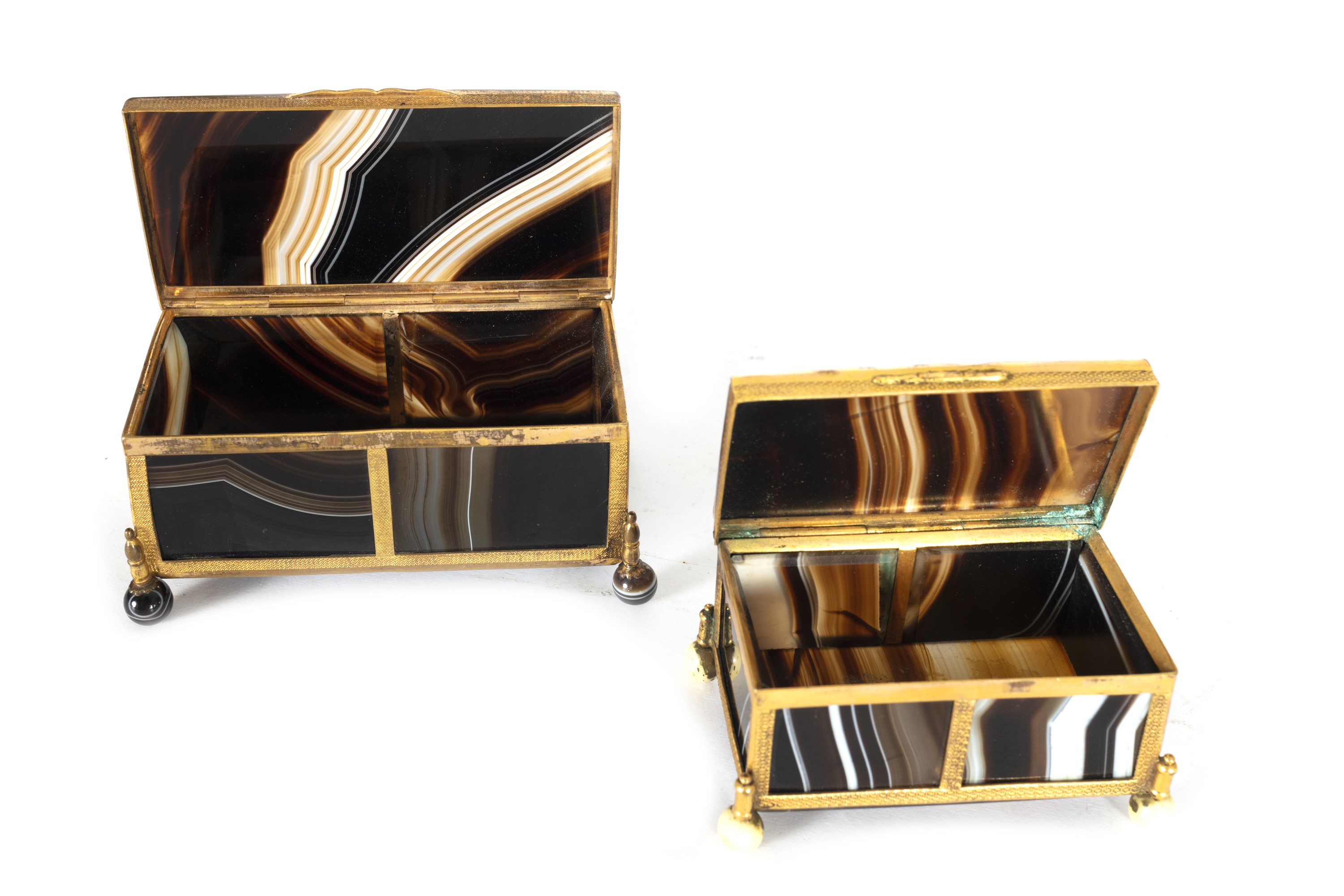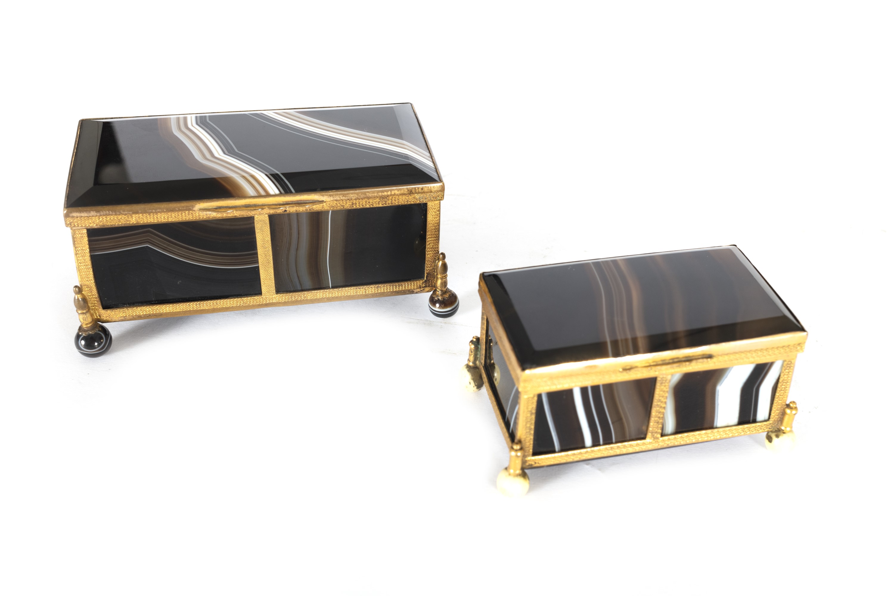 Due scatoline in agata e bronzo dorato, Francia secolo XIX