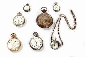 diametro cm 5 (il più grande) e cm 3 (il più piccolo) tre in argento, di cui uno non funzionante; due in metallo; [..]