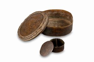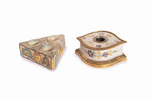 altezza cm 10 e diametro cm 14 (il primo) e cm 4,7 x 12 (il secondo) un calamaio polilobato decorato con fiori [..]