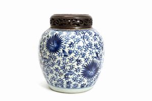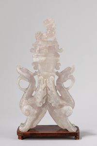 altezza cm 30,5; diametro cm 18,5 lieve scheggiatura sotto la base con base in legno