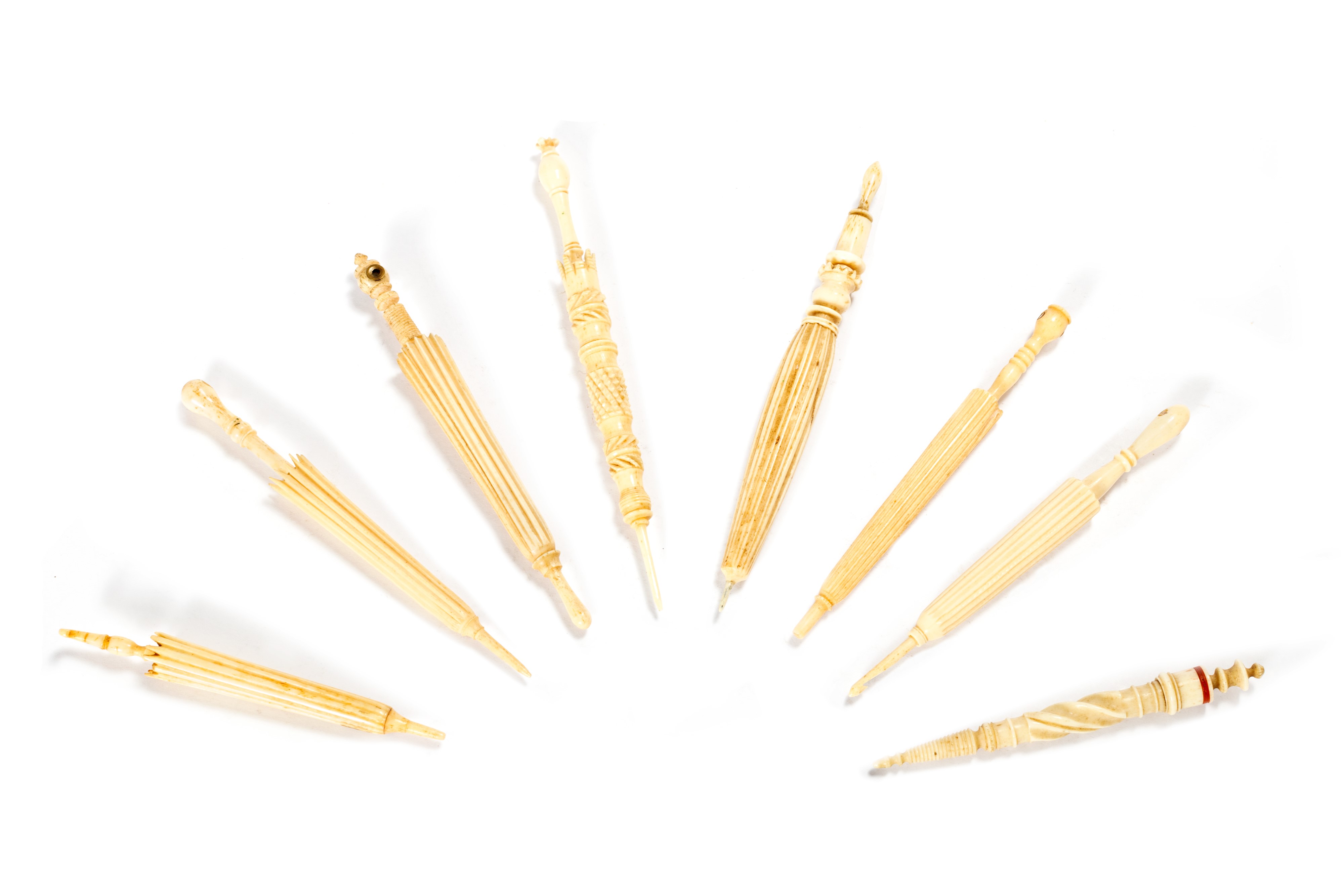 di cui tre a forma di ombrellino chiuso con manico contenente piccole lenti con vedute di località e monumenti