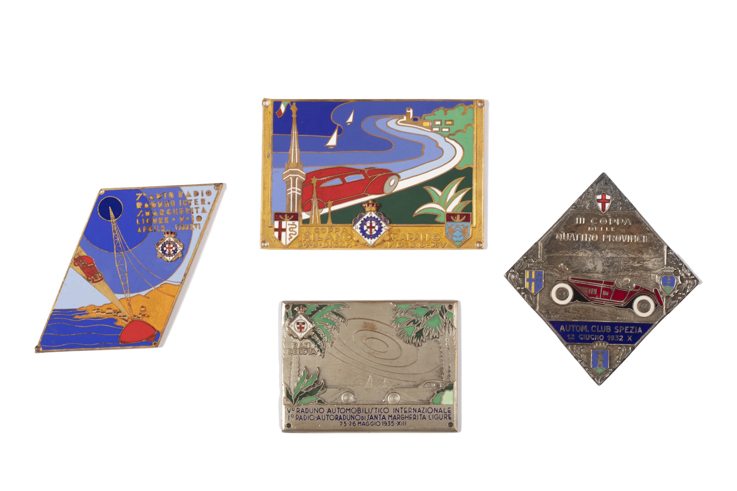cm 6,2 x 9 (la più grande) e cm 6,5 x 7,7 (la più piccola) due del V e VII Raduno Automobilistico Internazionale di Santa Margherita Ligure, 1935 e 1938; una della II Coppa Milano - Rapallo, 1936; una della III Coppa delle Quattro Provincie, Automobile Club Spezia, 12 giugno 1932.