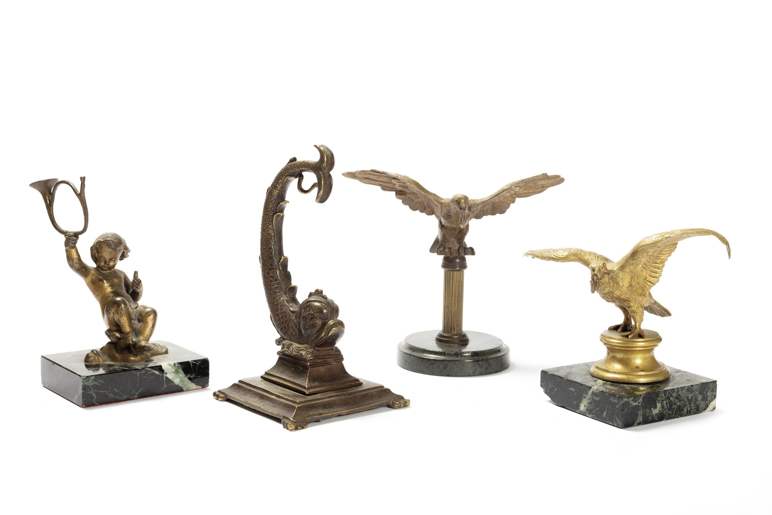 Lotto composto da quattro porta orologi in bronzo, inizi secolo XX