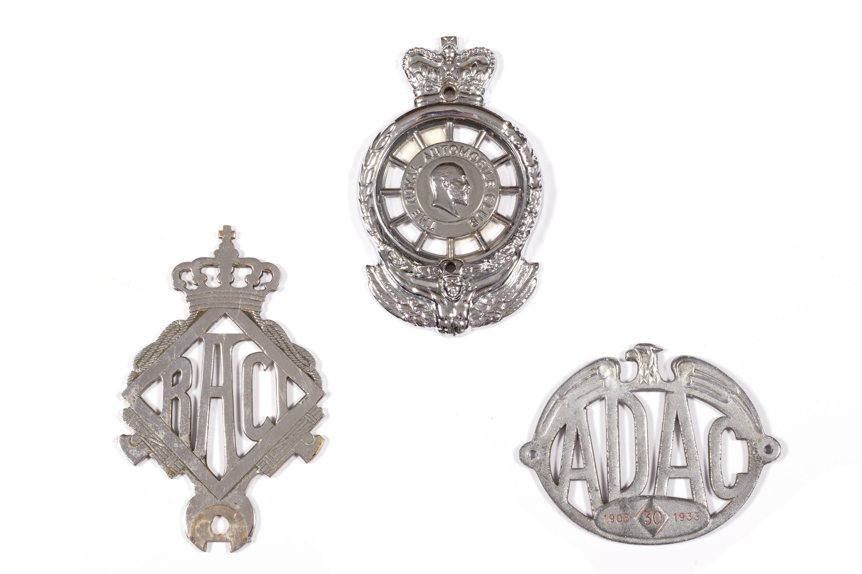 una RACI; una ADAC 1933; una THE ROYAL AUTOMOBILE CLUB