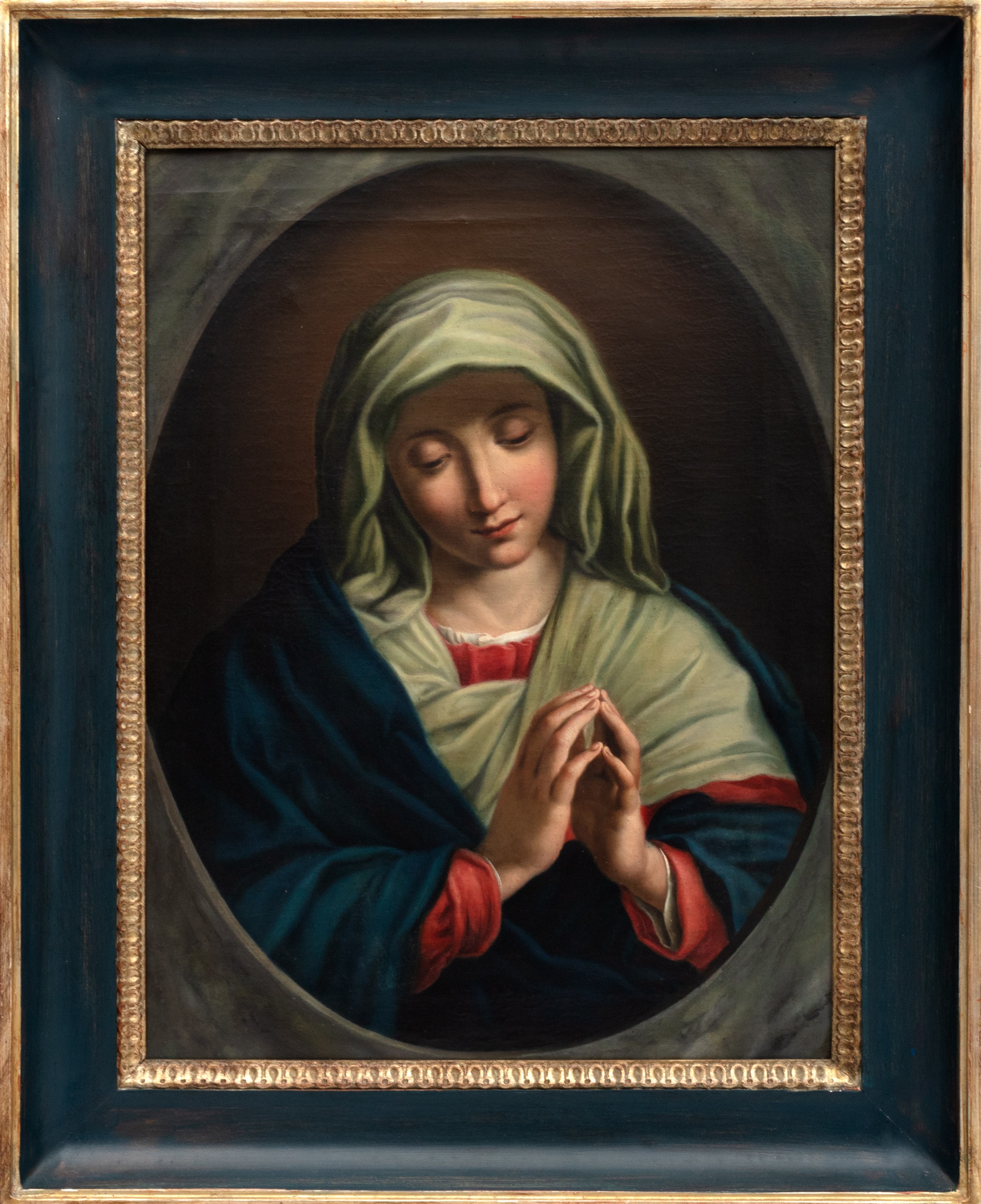 olio su tela, entro ovale dipinto, 57,5 x 43,5