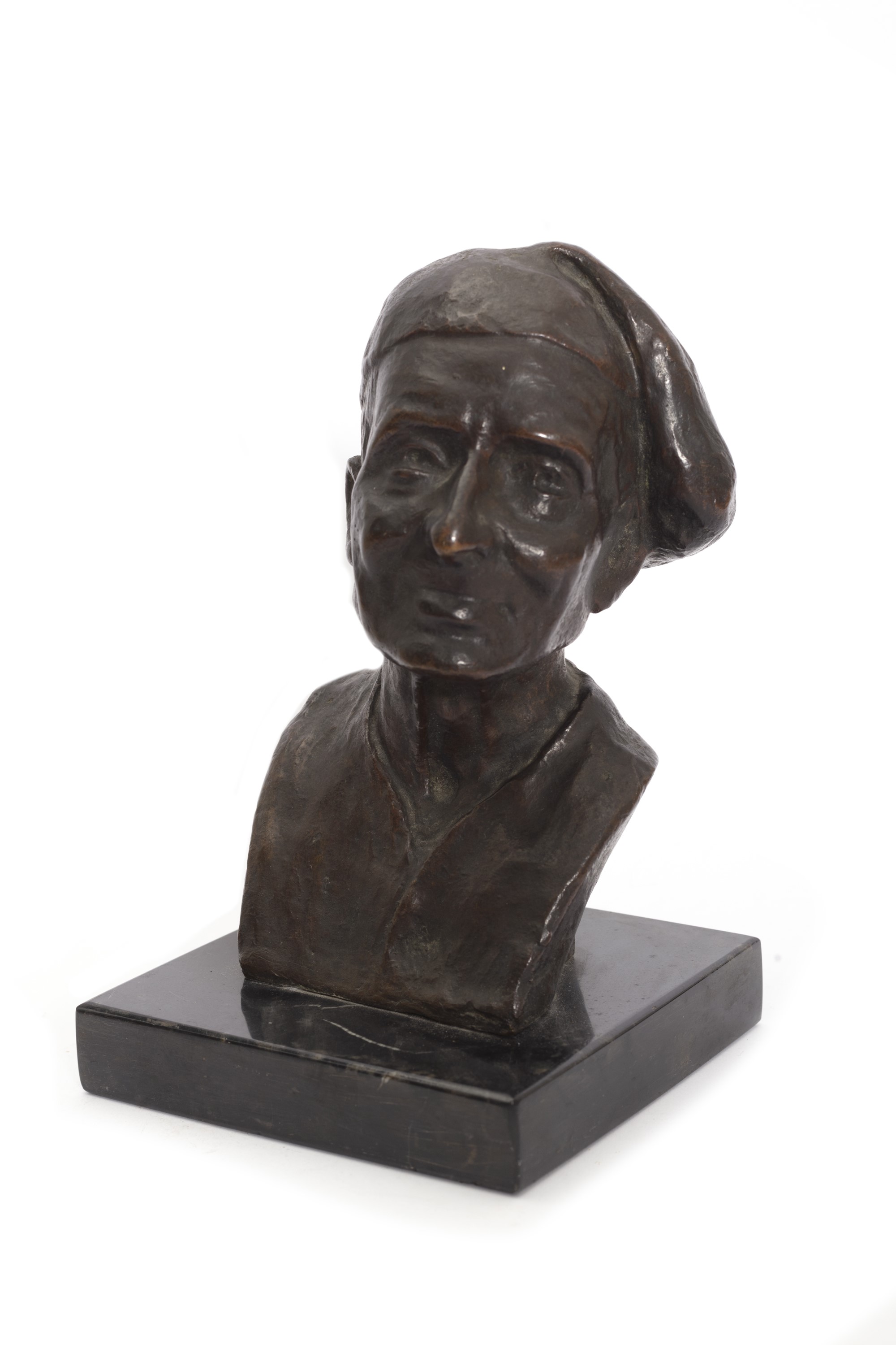 Piccola scultura in bronzo raffigurante busto di pescatore, secolo XX