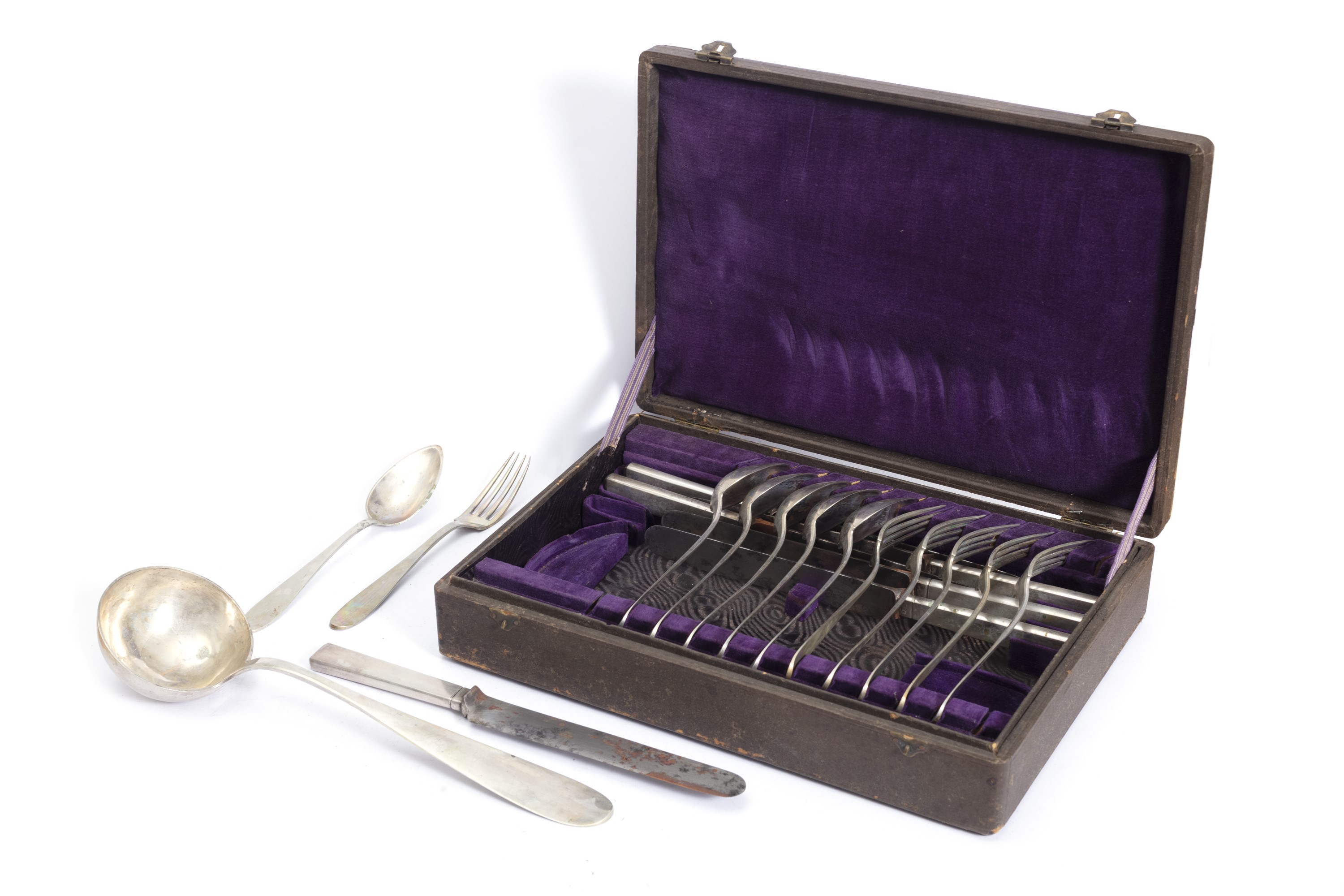 composto da un mestolo (con bollo differente), 6 cucchiai, 6 forchette e 6 coltelli; entro astuccio originale