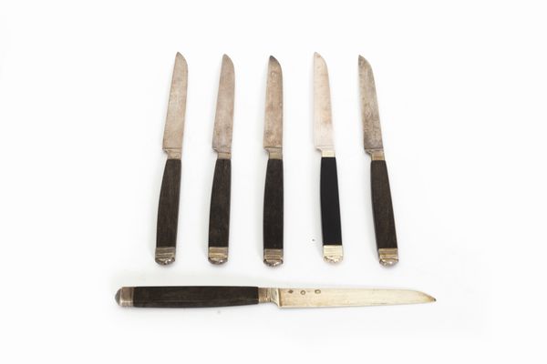 Servizio di sei coltellini in argento con manico in legno, Francia inizi secolo [..]