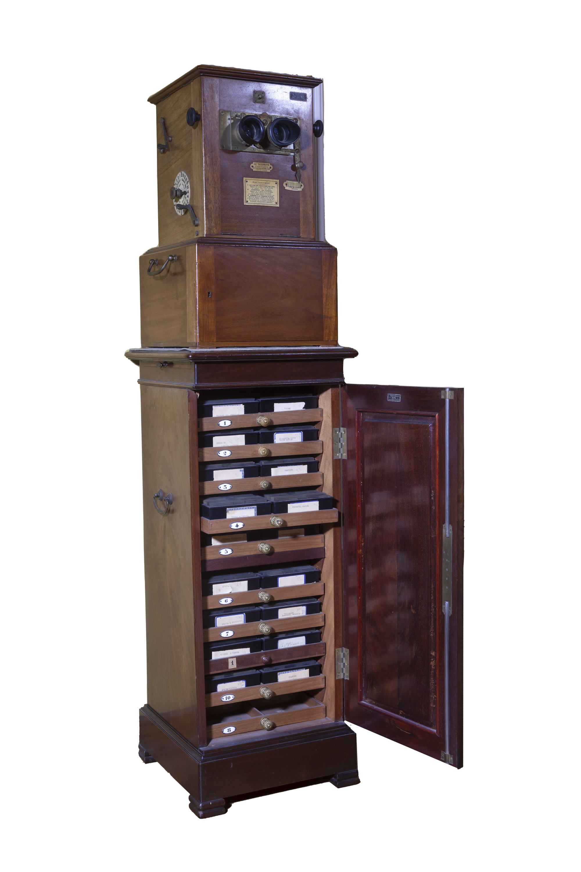 Taxiphote con mobile contenente collezione di vetrini fotografici, inizi secolo [..]