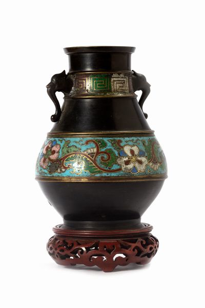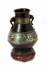 Vaso in bronzo e smalti cloisonné, Giappone periodo Meiji