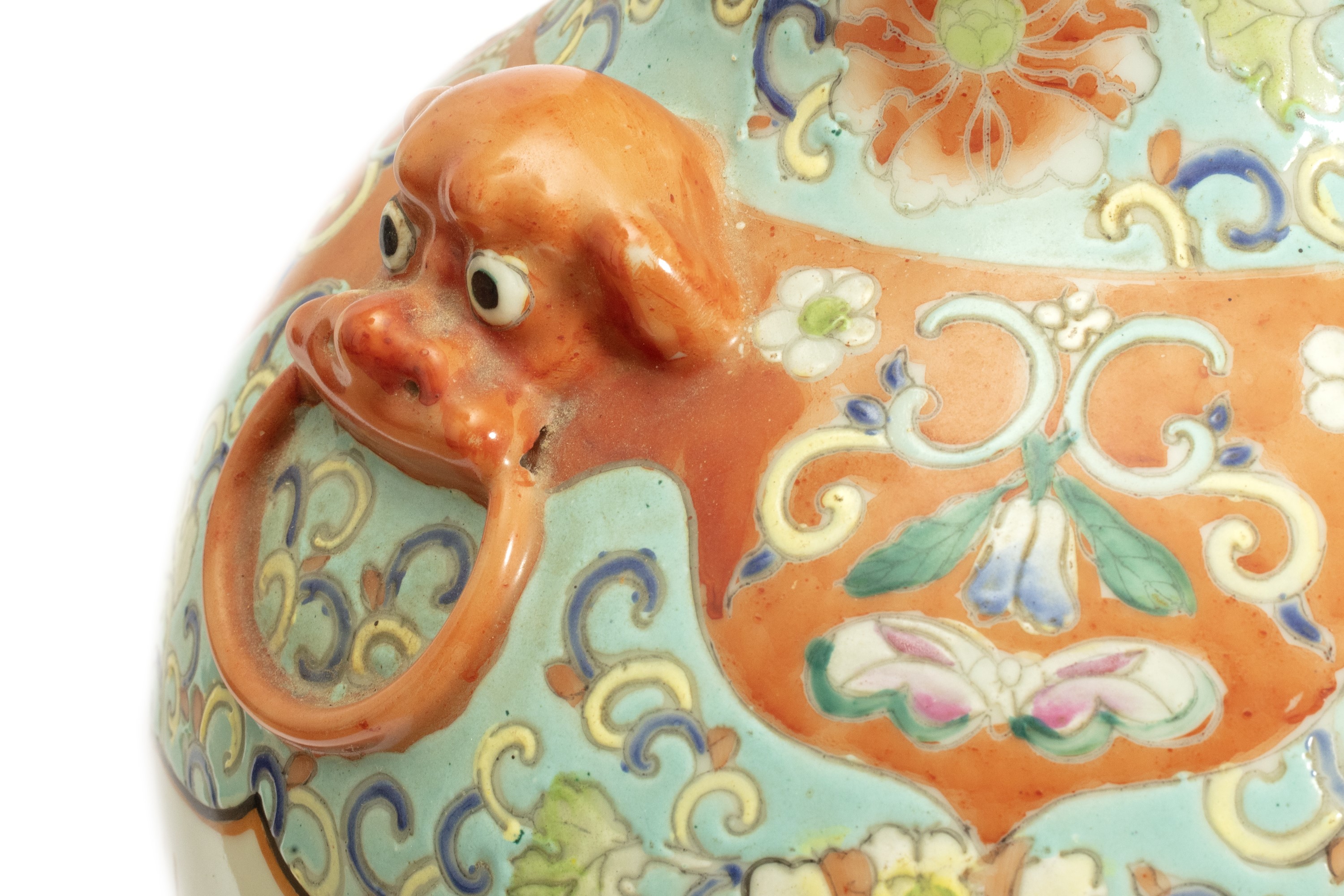 Vaso in porcellana policroma, con coperchio, Cina inizi secolo XX