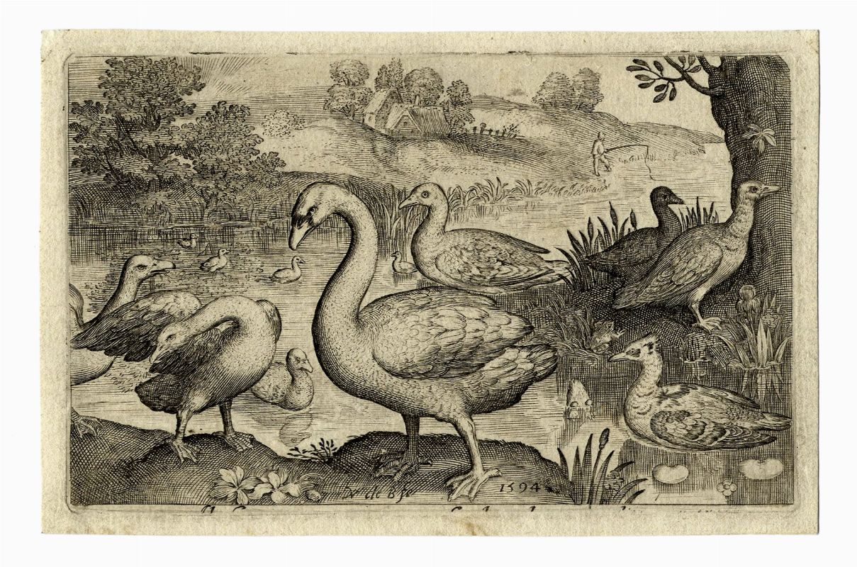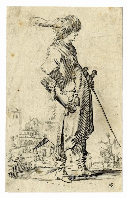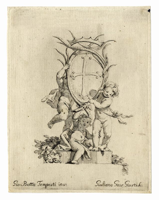 Acquaforte. mm 188x146. Da invenzione di Giovanni Battista Tempesti (Volterra, 1729 – Pisa, 1804). Ottima prova su carta vergellata pesante.SI AGGIUNGONO: Sebastien Le Clerc il vecchio (Metz, 1632-Parigi, 174), Combat de Leuze. Acquaforte. mm 148x174. Le Blanc, II, 452. Dalla serie Les Petites Conquetes du Roi, serie in 8 tavole pubblicata nel 1702. Al verso marchio della collezione Richard Jung (Lugt, 3791). Salomon Savery (Amsterdam, 1594-1678). Figura in piedi di profilo con faretra spada e turbante.1625-1630 ca. Nicolas de Bruyn (Anversa, 1571-Rotterdam, 1656), Cigno e anatre. Acquaforte. mm 79x124.