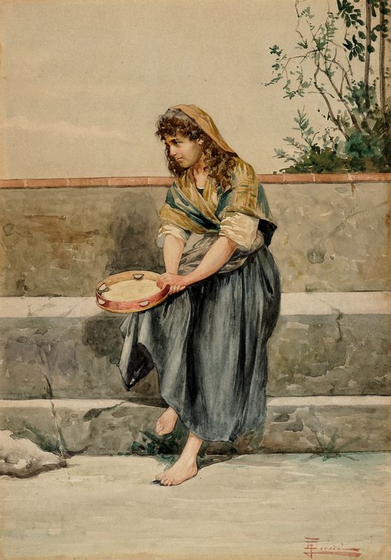 Matita e acquerello su cartone. mm 405x282. Firmato in basso a destra.
