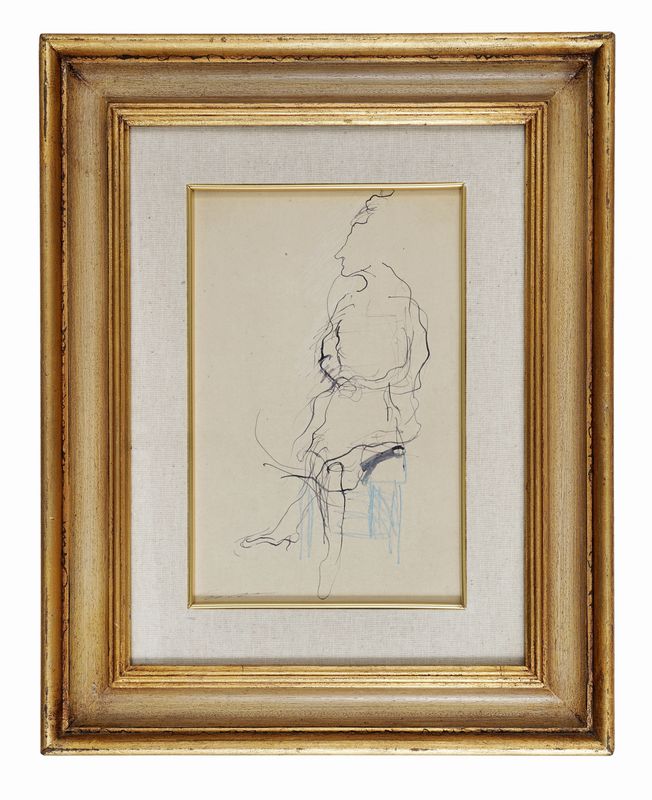 Pastello, acquerello, penna e inchiostro di china su tela. cm 29,5x20. Iscritto "Treccani" in basso a sinistra.