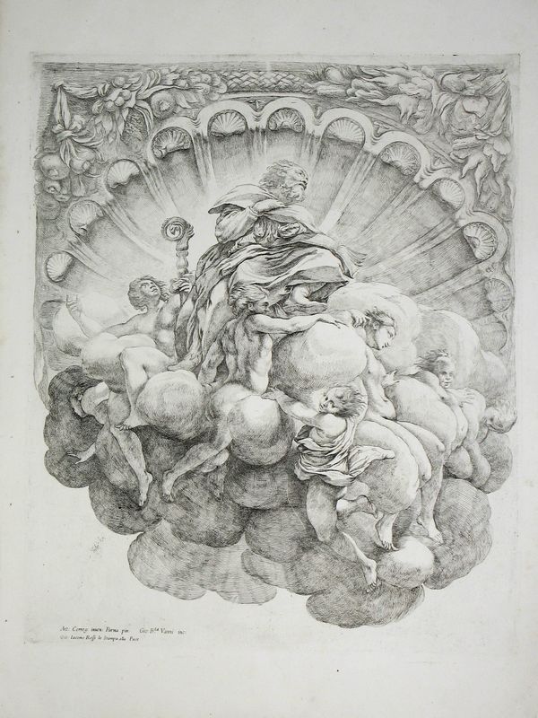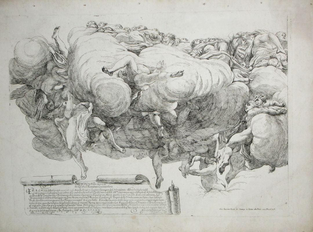 Acquaforte. mm 365/370x347/500. Foglio: mm 650x480. Mussini, 286-300. Serie completa in 15 fogli pubblicata nel 1642 da Giovan Giacomo de Rossi. Buone prove su carta calcografica pesante in tiratura tarda.