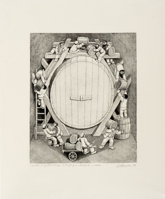 Xilografia su velina. mm 341x275. Foglio: mm 543x465. Firma e data a matita in basso a destra, titolo e tiratura in basso a sinistra e al centro la tecnica esecutiva. Es. 21/50.