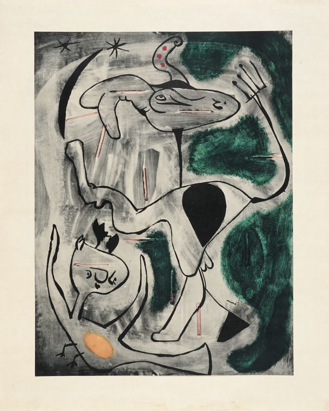 Acquaforte. mm 480x327. Foglio: mm 700x500. Firmata a matita in basso a destra e "P.A" in basso a sinistra. Timbro a secco de "Il Cigno Stamperia d'Arte" in basso a destra. SI AGGIUNGONO: 2) Maccari M., Gli Arlecchini. Litografia. mm 406x545. Firmata a matita in basso a destra e numerata in basso a sinistra. Es. 43/89. 3) Mario Nigro, Senza titolo. Serigrafia. mm 400x240. Foglio: mm 665x490. 4) Joan Mirò, L'homme âne. Fotoriproduzione. mm 480x361. Tavola tirata dalla SEDA, Società Editrice per la Divulgazione dell'Arte di Milano, in 1000 esemplari. Es. 288/1000.