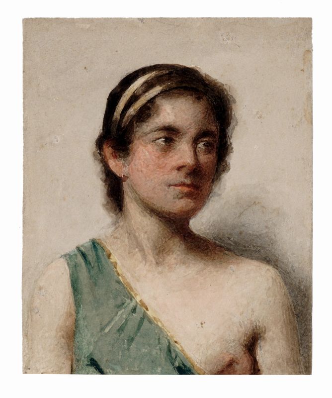 1) Anonimo del XX secolo, Ritratto femminile. Acquerello e matita su carta greve. mm 167x130. 2-3-4) Anonimo del XX secolo, 3 incisioni all'acquaforte da studiare con firme in basso a destra. 5) Paolo Veronese, Due putti. Acquaforte tarda.