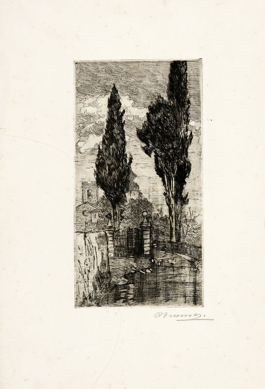 Lotto composto di 1 acquerello e 4 incisioni all'acquaforte.