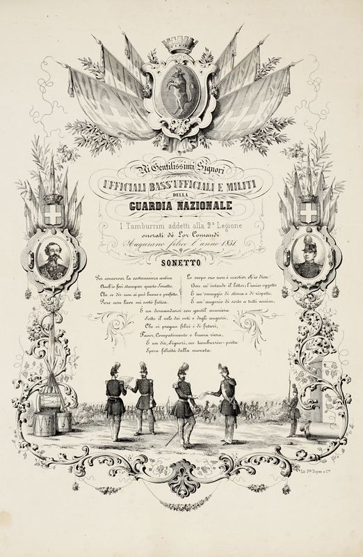 Lotto composto di 17 incisioni della Guardia Nazionale.