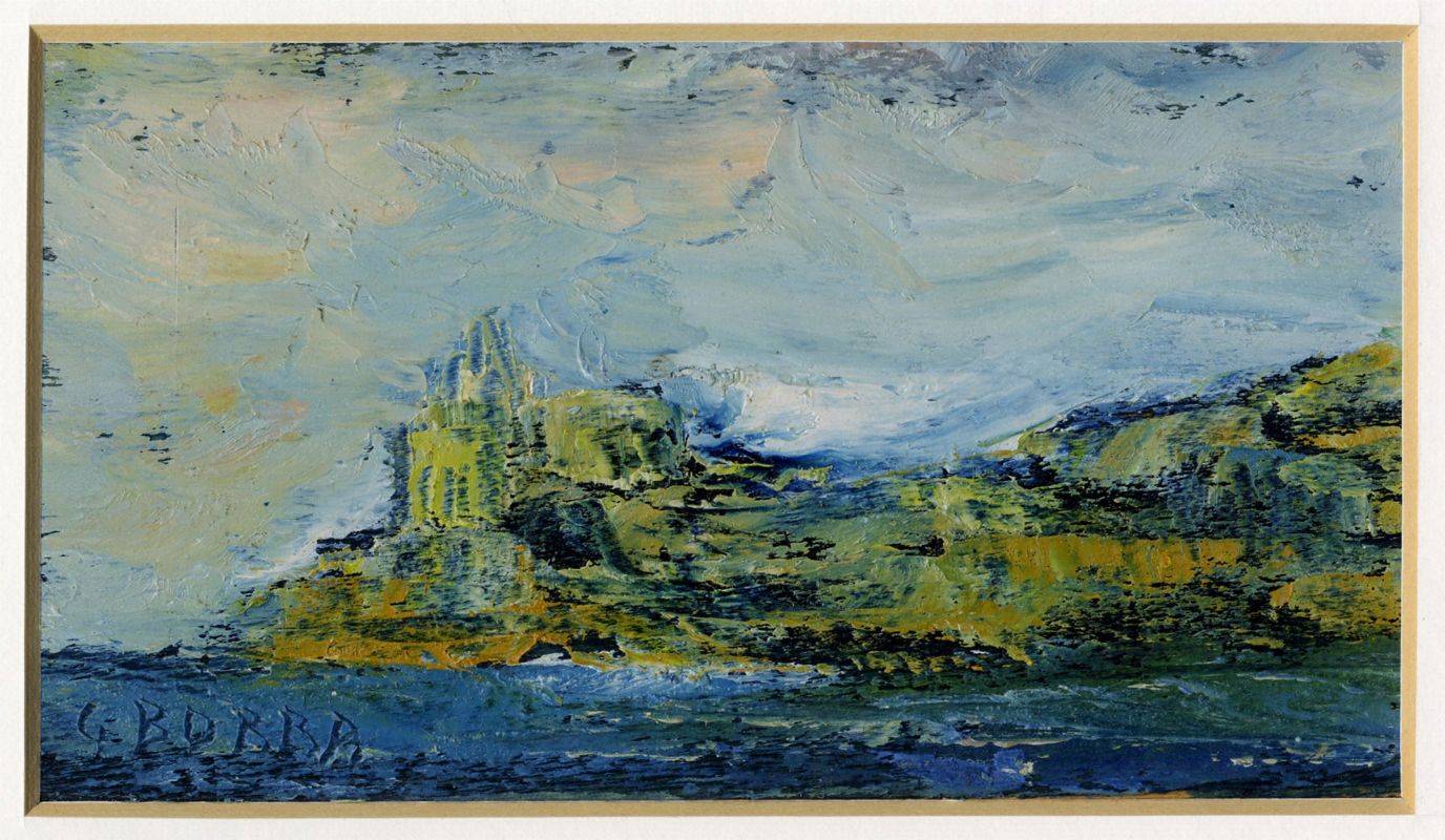 Due Senza titolo. Olio su tavoletta. cm 10x18 circa cad. Firmati entrambi in basso a sinistra. Accompagnati dall'invito alla mostra personale del pittore alla Galleria Salotto d'Arte di Desenzano del Garda.