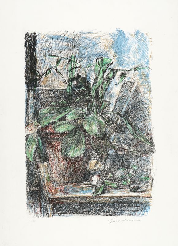 1-2) Enzo Faraoni, Nature morte. 2 litografie. Fogli: mm 700x500. Firmate e numerate a matita. Es. 83/100 e 74/100. 3) Ennio Morlotti, Fiori. Litografia. Foglio: mm 700x500. Firmata e tiratura a numeri romani a matita in basso. Es. XXI/XXV. 4) MRA, Senza titolo. Serigrafia. Foglio: mm 700x500. Firmata a pastello blu e rosso in basso a destra e in controfirmata in lastra.