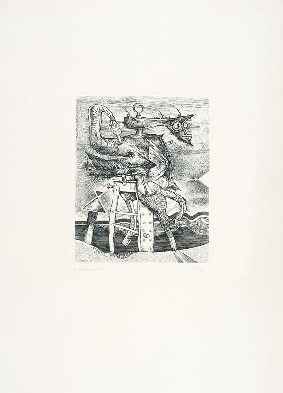 1) Giorgio Ciommei, Senza titolo. 1975. Acquaforte. mm 295x240. Foglio: mm 700x495. Firma, data e tiratura a matita in basso. Es. III/XXV. 2) Valeriano Trubbiani, Due episodi ameni. 1974. Acquaforte a doppia lastra. mm 330x225 cad. Foglio: mm 495x700. Firma e tiratura in basso a matita e firma, data e titolo in lastra. Es. B/XXI. 3) Raimondo Rossi, I miei libri. 1988. Acquatinta. mm 83x110. Foglio: mm 160x210. Firma, data e tiratura a matita in basso. Es. 39/100. 4) Pierluigi Piccinetti, Sessanta anni di commerciali a Fano. 1985. Acquaforte. mm 200x160. Foglio: mm 350x250. Firma, data, titolo e tiratura a matita in basso. Es. 50/70. 5) Mario Bellagamba, Le masse. 1997. Acquaforte. mm 225x275. Foglio: mm 345x390. Firma, titolo e tiratura a matita in basso, firma e data in lastra. Es. III/XX.