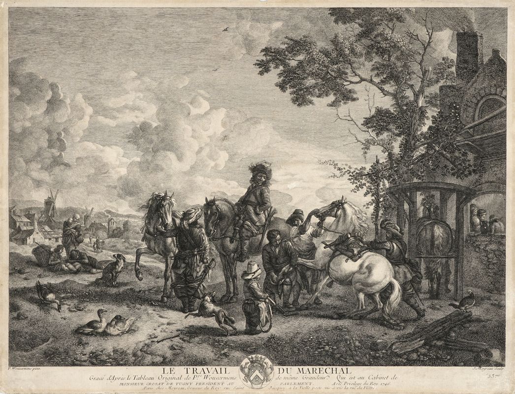 Acquaforte. Dimensioni varie. Si segnalano: Jan van Londerseel (Antwerp, 1570/1575 - Rotterdam, 1624/1625), Paesaggio boscoso con al centro il profeta disobbediente divorato da un leone. Acquaforte. mm 372x478. Foglio: mm 415x540. Hollstein,14. Da un soggetto di Gillis Claesz. de Hondecoeter (Anversa o Utrecht, 1575/1583 – Amsterdam, 1638) / Otto grandi paesaggi di genere da invenzioni di Philips Wouwerman (Haarlem, 1619 – 1668). Acquaforte. mm 370x480 (dimensioni massime) / Israel Silvestre (Nancy, 1621 – Parigi,1691), Tre grandi vedute di castelli e giardini. Foglio: mm 390x525.
