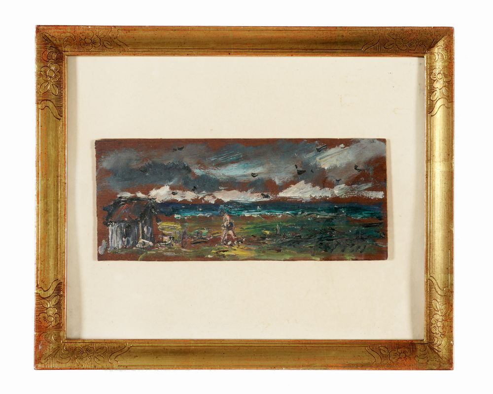 Tempera su tavoletta. cm 10x23,5. Iscritto in basso a destra: "Pisis".