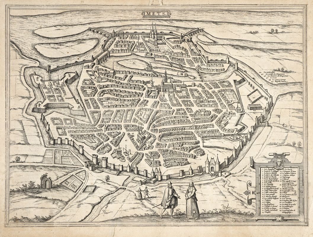 Incisione in rame.mm 355x480. Foglio: mm 395x520. Da Civitates Orbis Terrarum. SI AGGIUNGE: Parte sinistra di mappa tolemaica edita per la prima volta a Strasburgo nel 1513. Tiratura XVIII secolo su carta spessa.