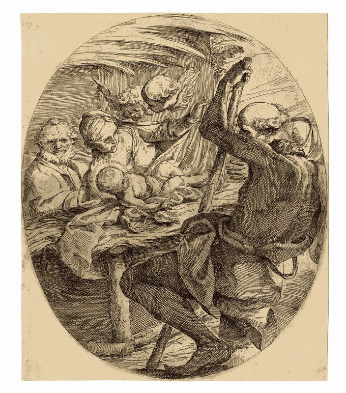 Acquaforte. mm 235x198. Bartsch, 5. Firmata in controparte in basso verso sinistra. Ottima prova nel II stato di 2 su carta vergellata con filigrana "fiore di giglio in doppio cerchio".
