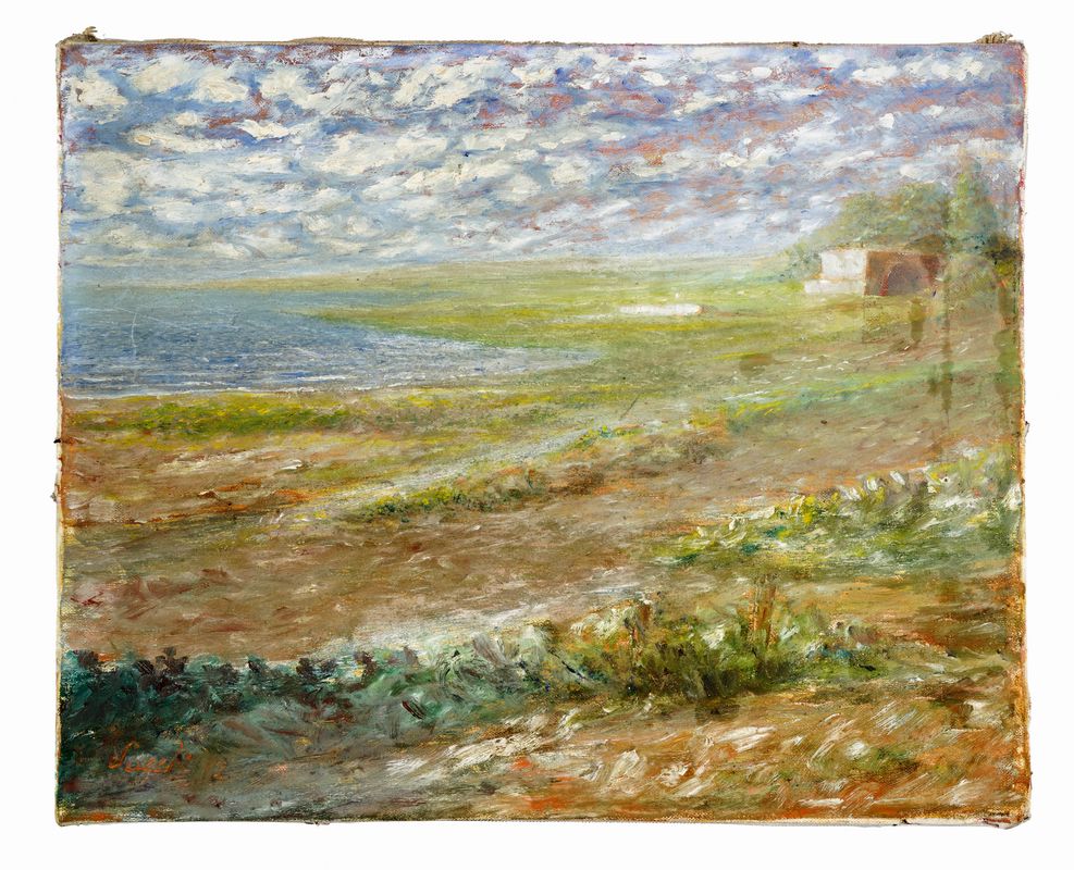 Tempera su tela. cm 40,7x49,4. Firmato in basso a sinistra.