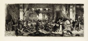 1923. 1-2) L'acquafortista Francesco Mennyey . Disegno preparatorio e relativa xilografia. Disegno: mm 215x190. [..]