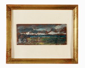Olio su cartone. cm 21,5x32,5. Firmato in basso a sinistra.